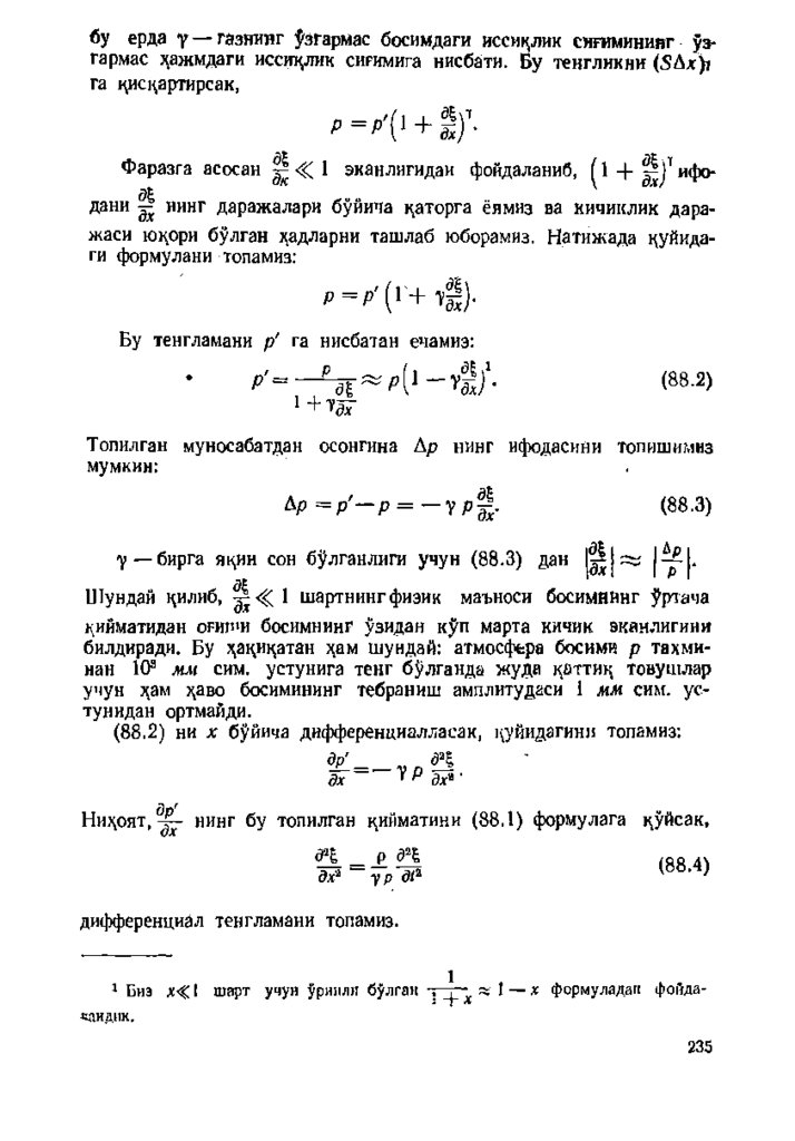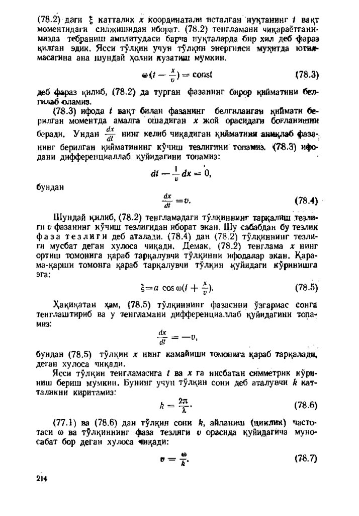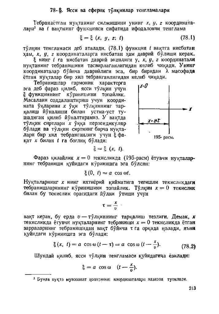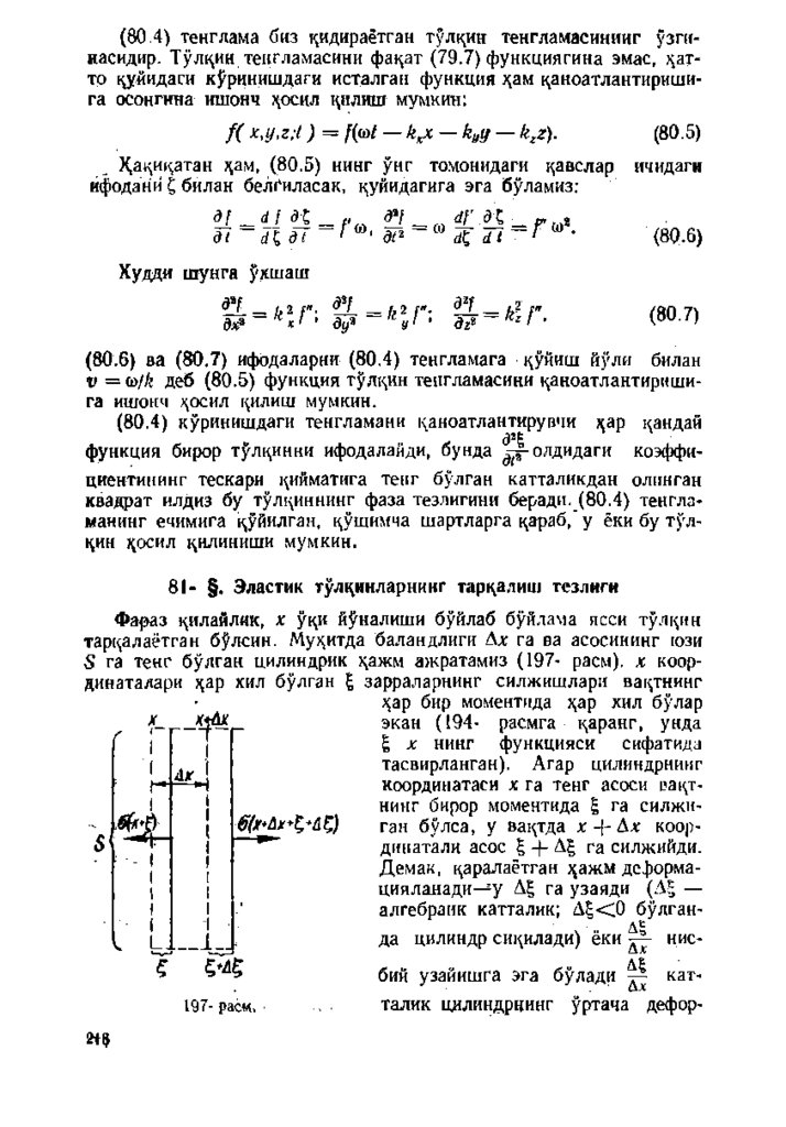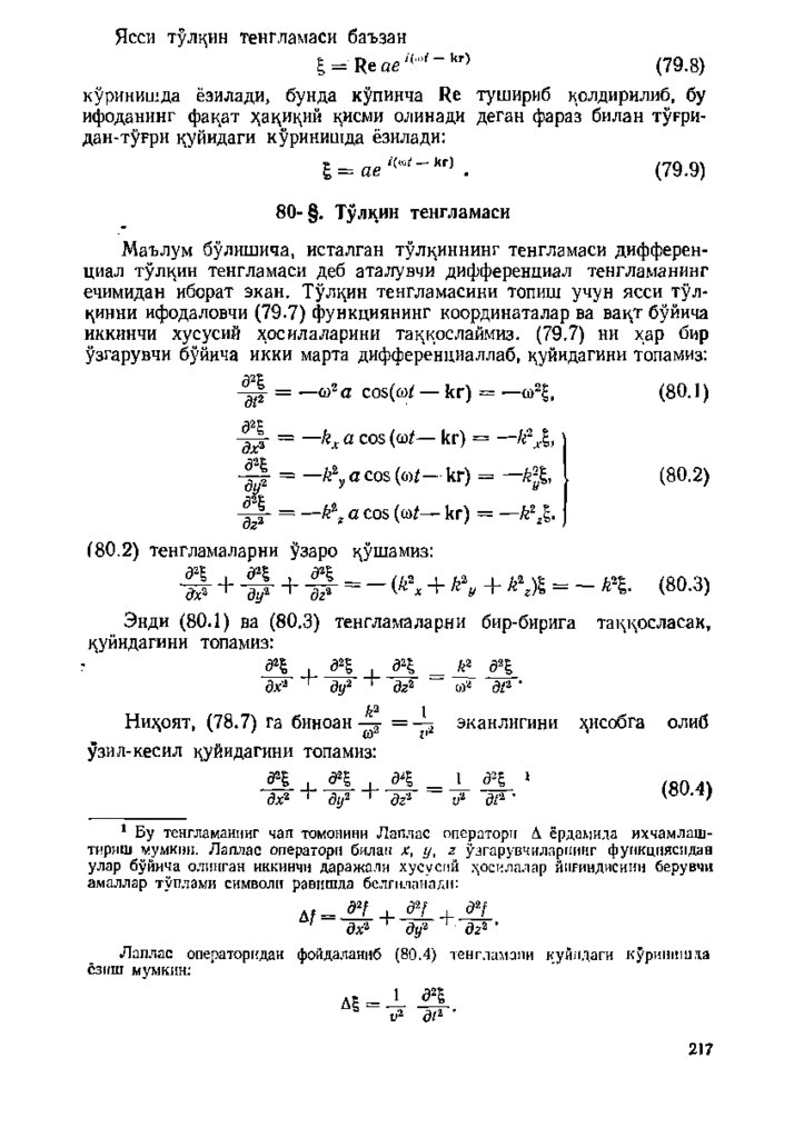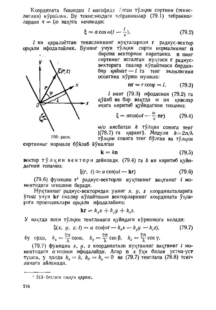 79- §. Ихтиёрий йуналишда тарцалувчи ясси тулцип тенгламаси . . . 215
