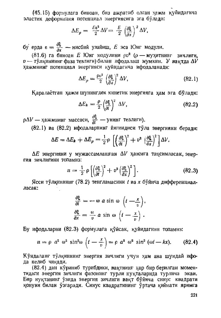 82-..§ . Эластик тулцнн э н е р г и я с и .............................................................................. 220