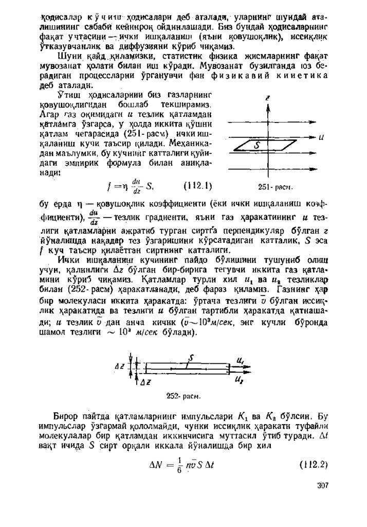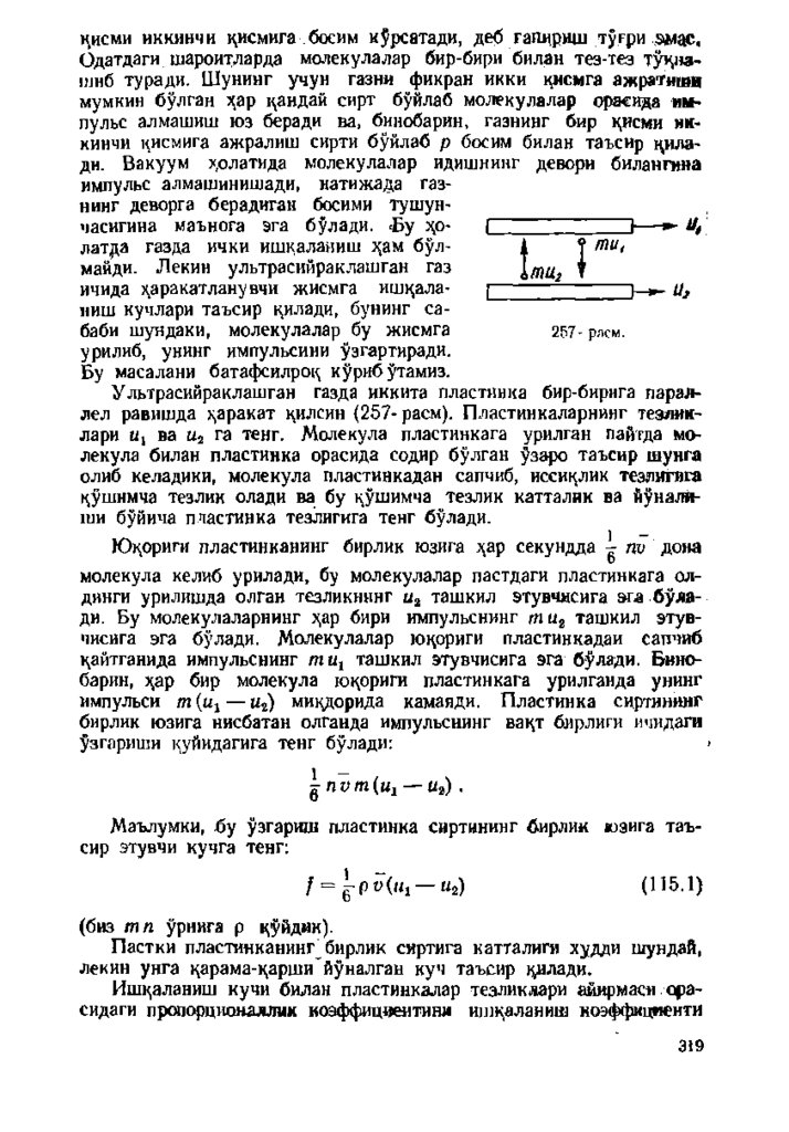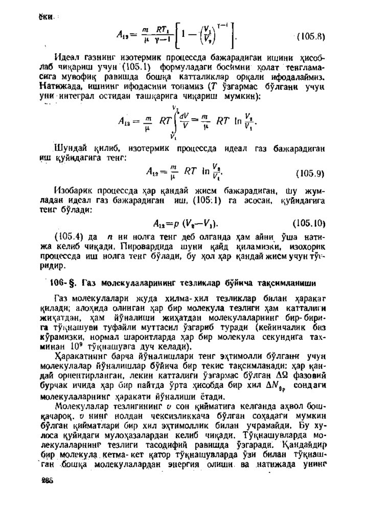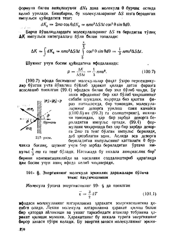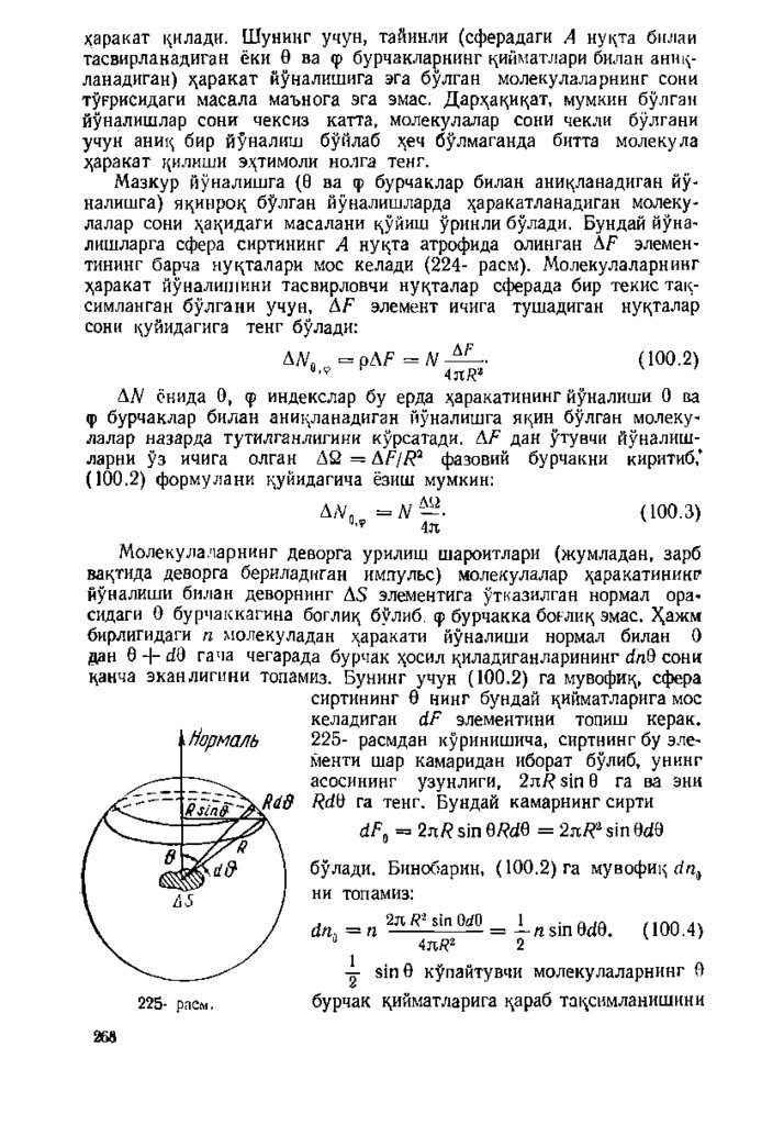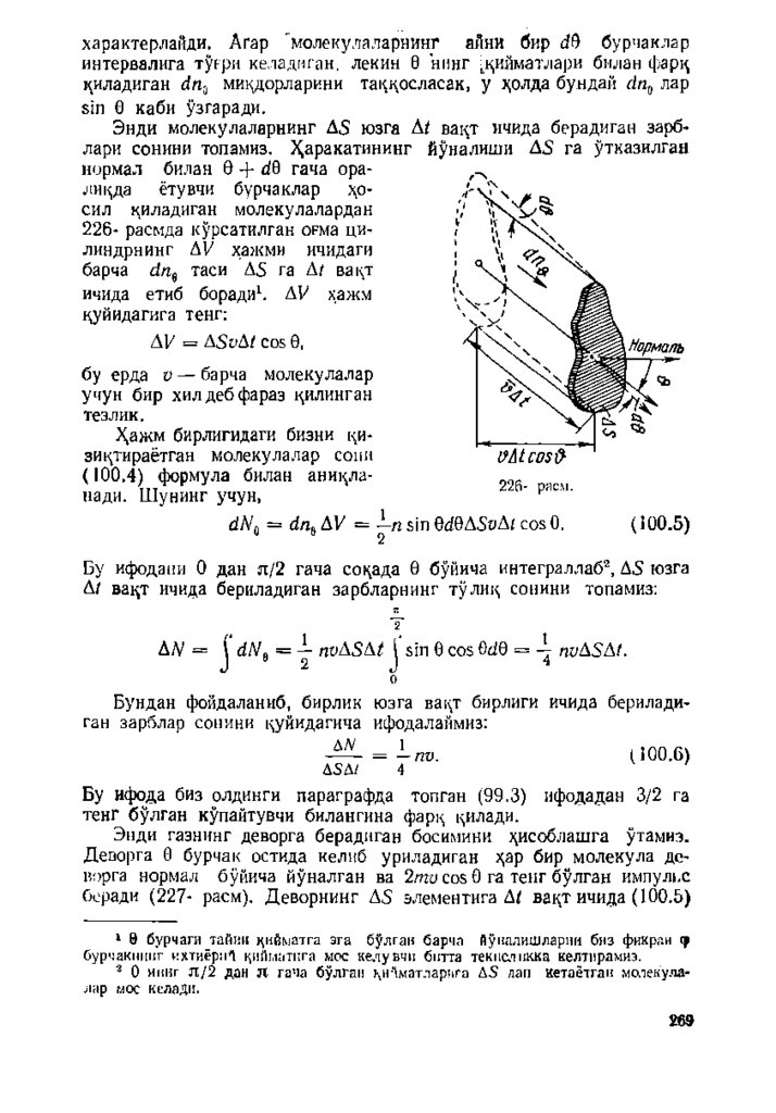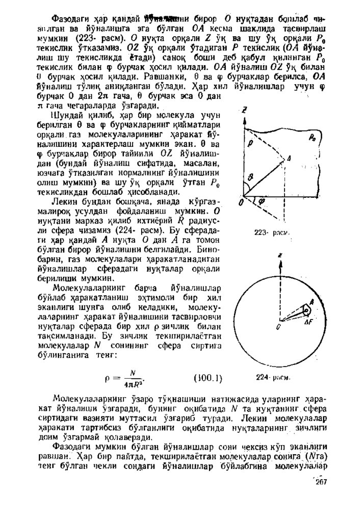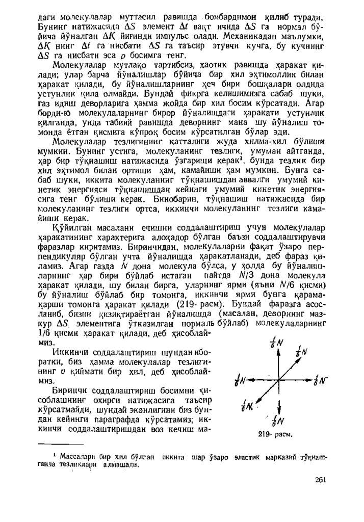 100- §. М олекулалар тезликларининг йуналиш лар бунича тацсимланишиии аниц ;^исобга о л и ш ........................................................................................266