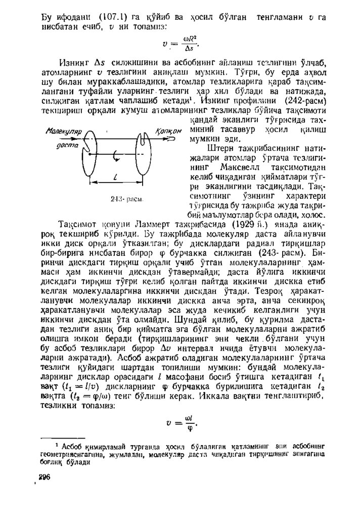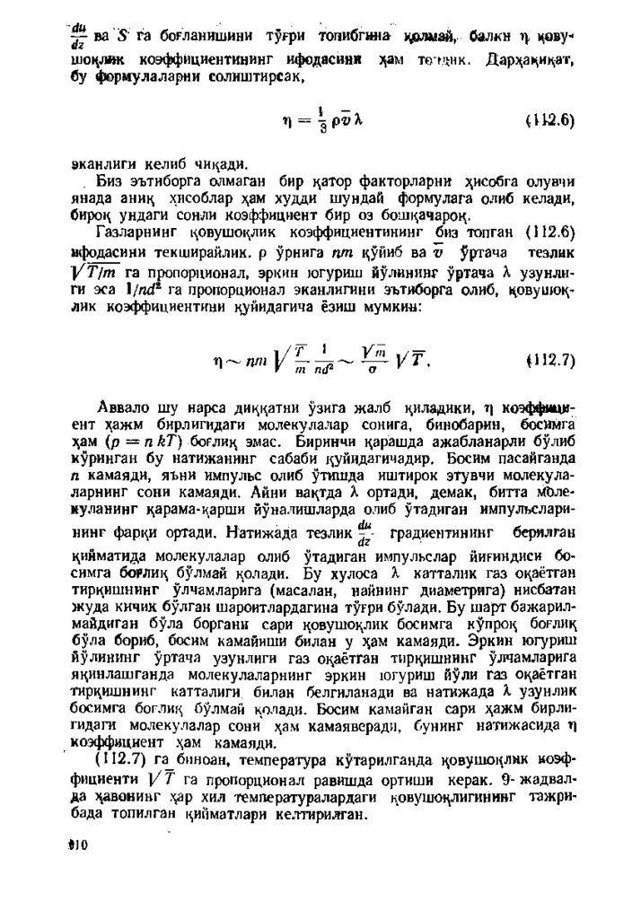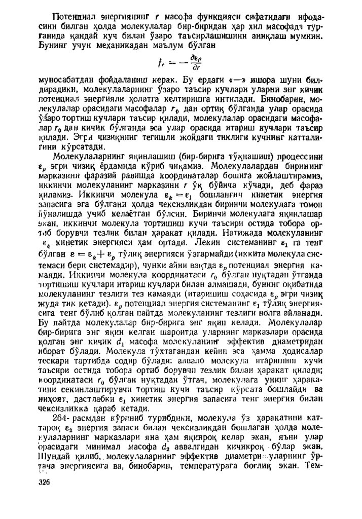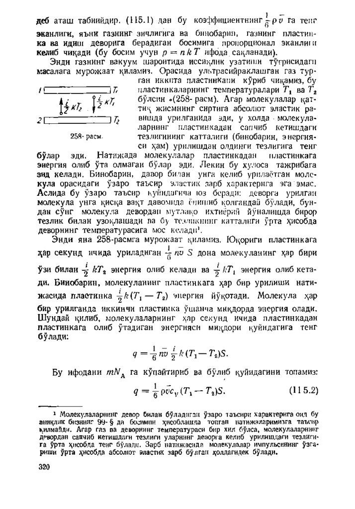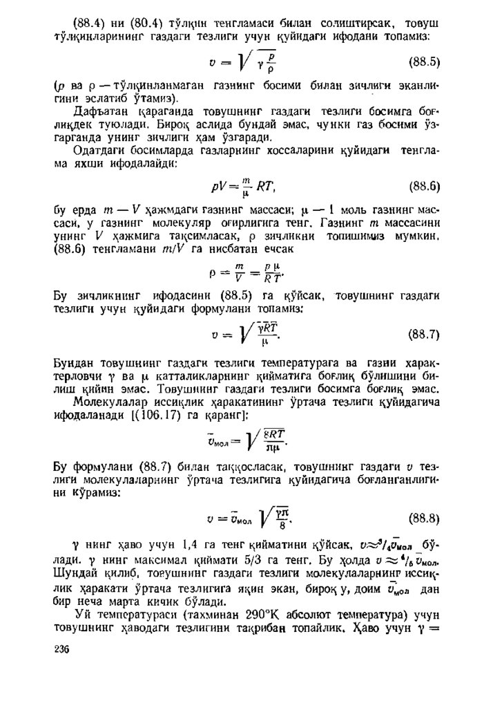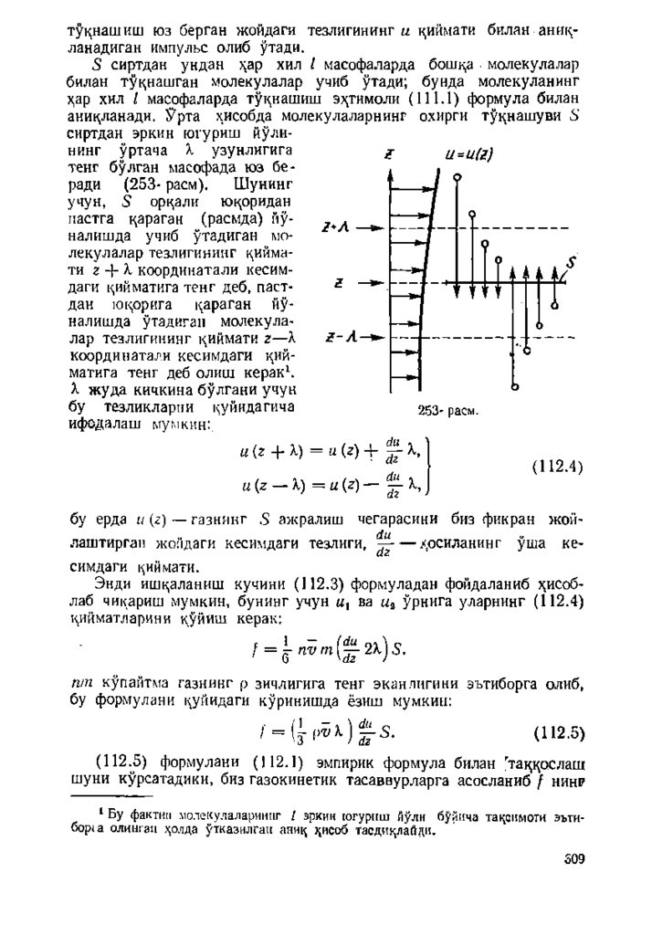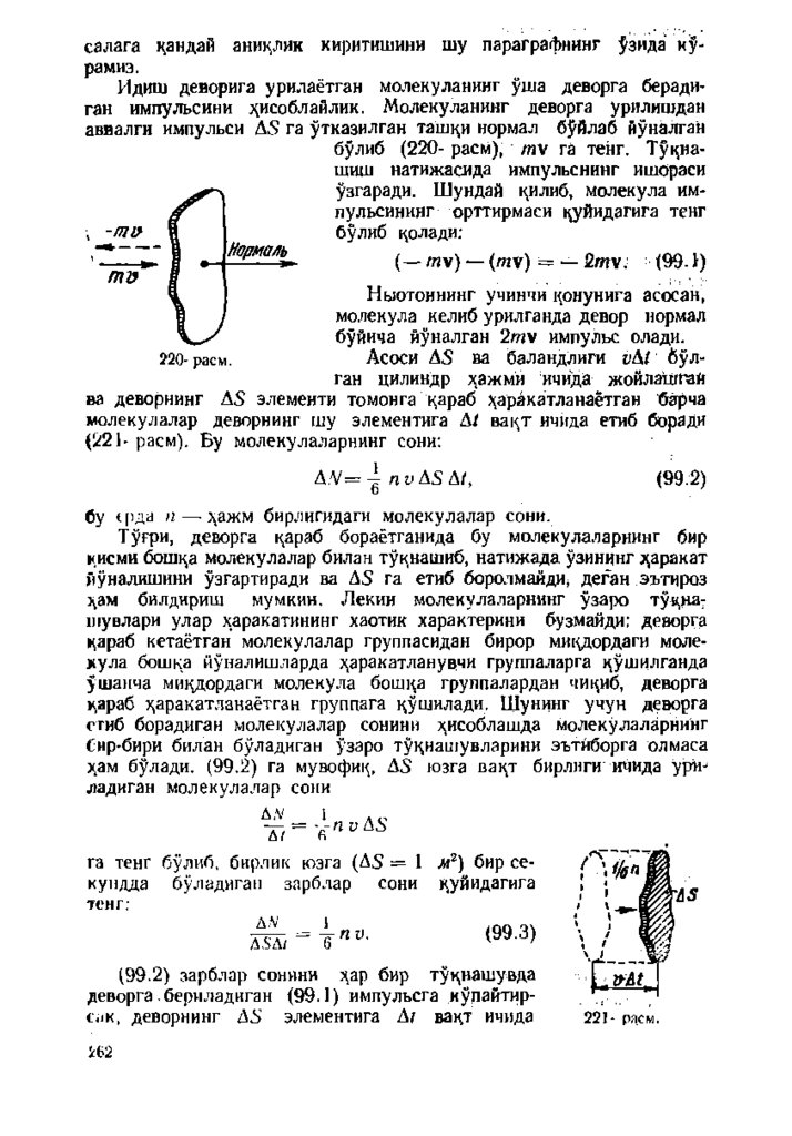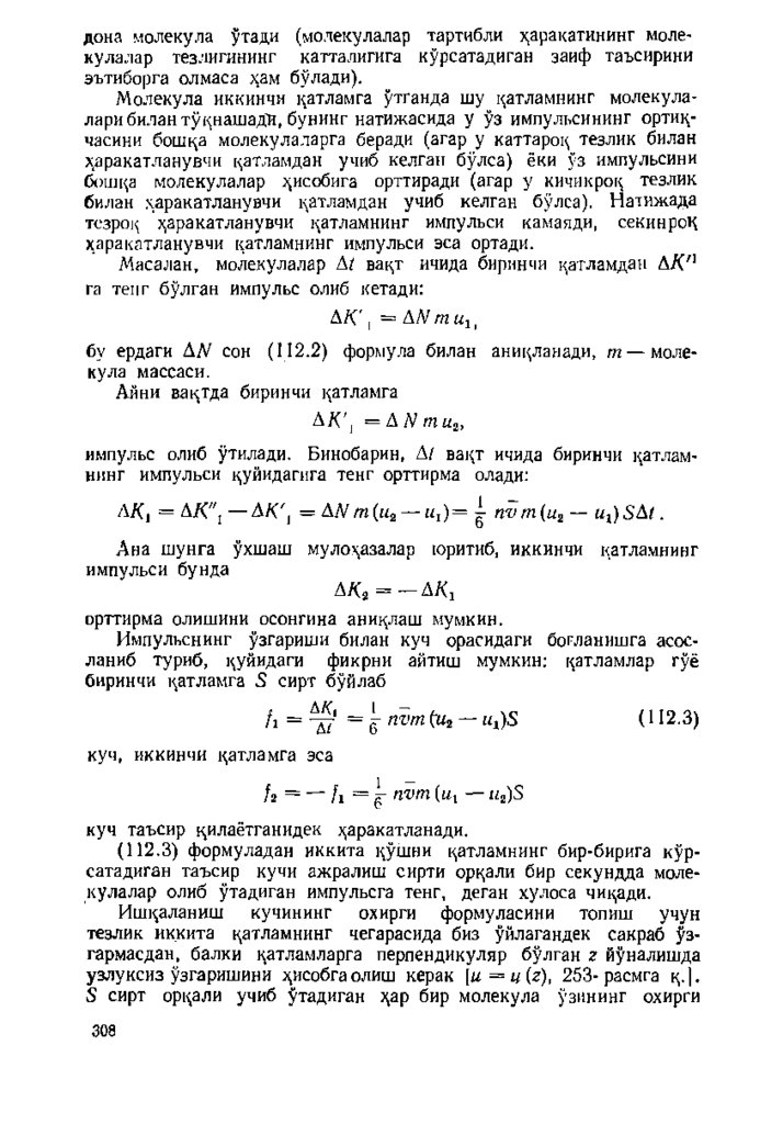 100- §. М олекулалар тезликларининг йуналиш лар бунича тацсимланишиии аниц ;^исобга о л и ш ........................................................................................266
