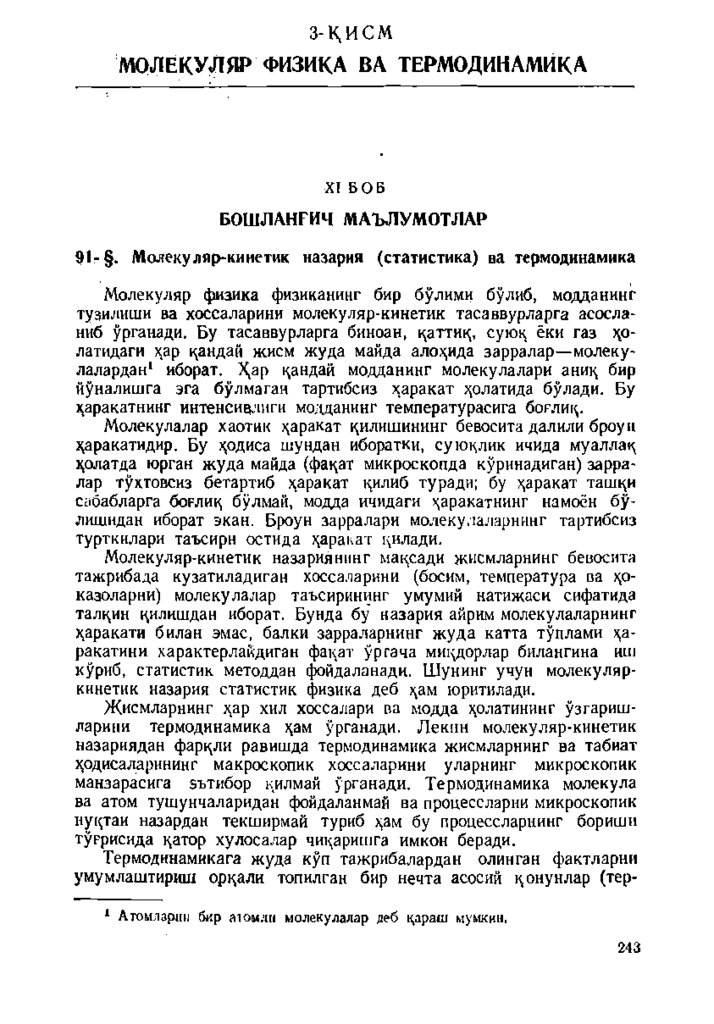 91- §. М олекуляр-кинетик назария (статистика) ва термодинамика . . . 243