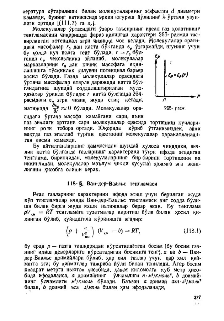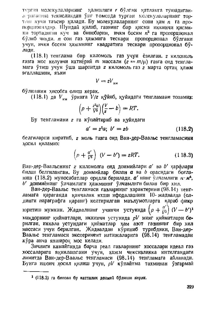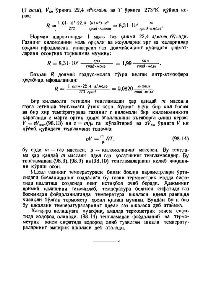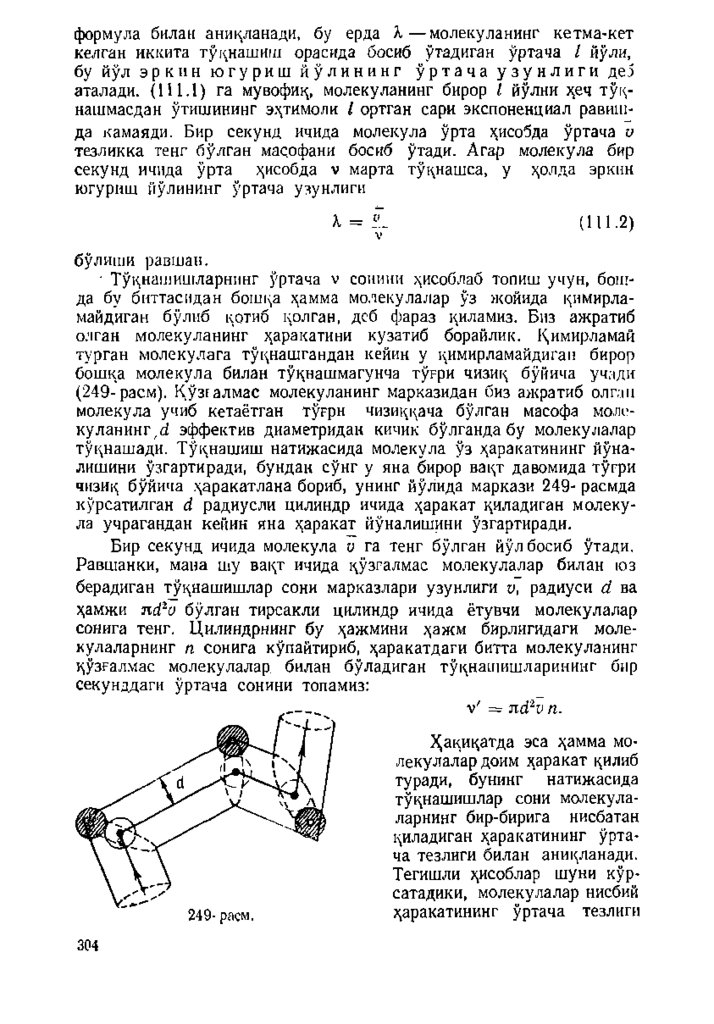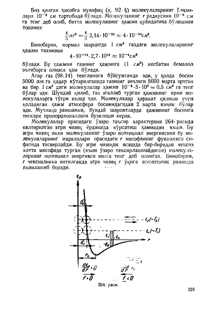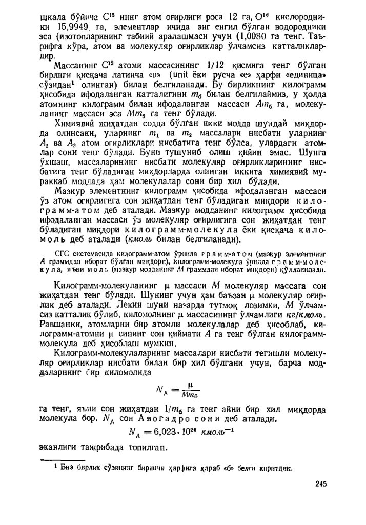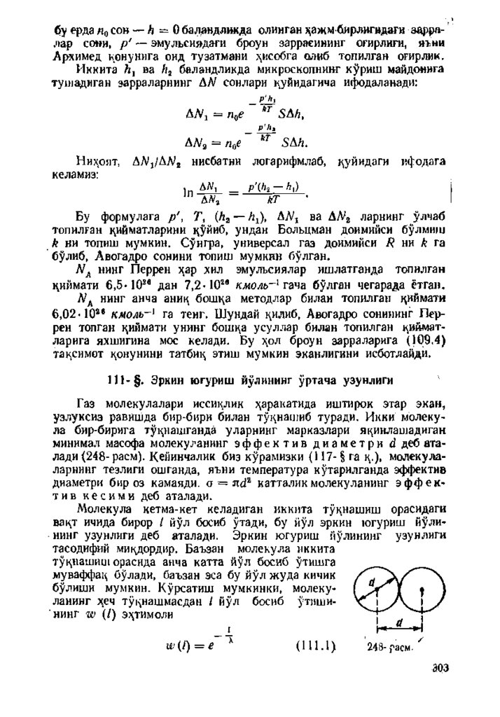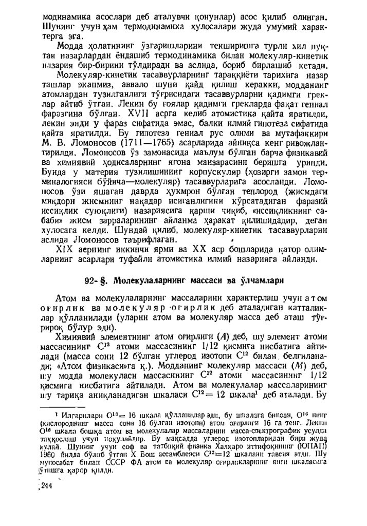 92- §. М олекулаларнинг массаси ва 5 ^ л ч а м л а р и .............................................. 244