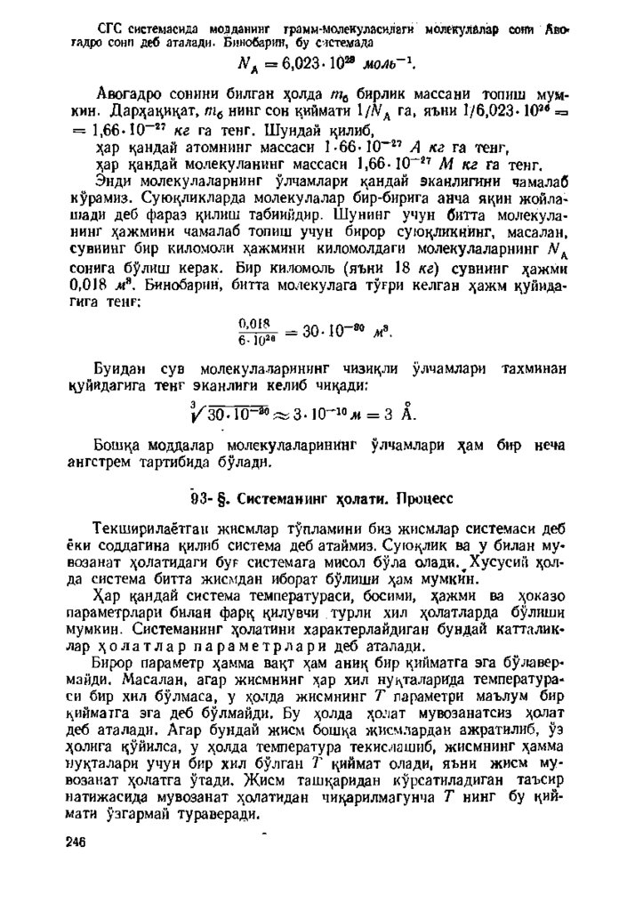 93- §. Системанинг з^олати. П р о ц е с с ..................................................................... 246