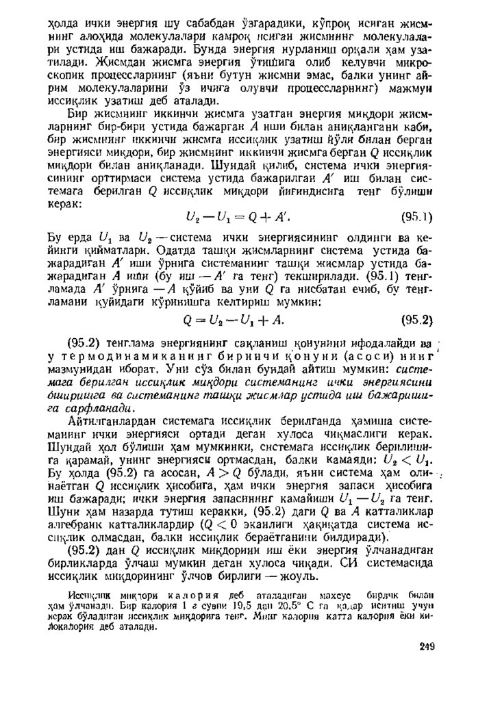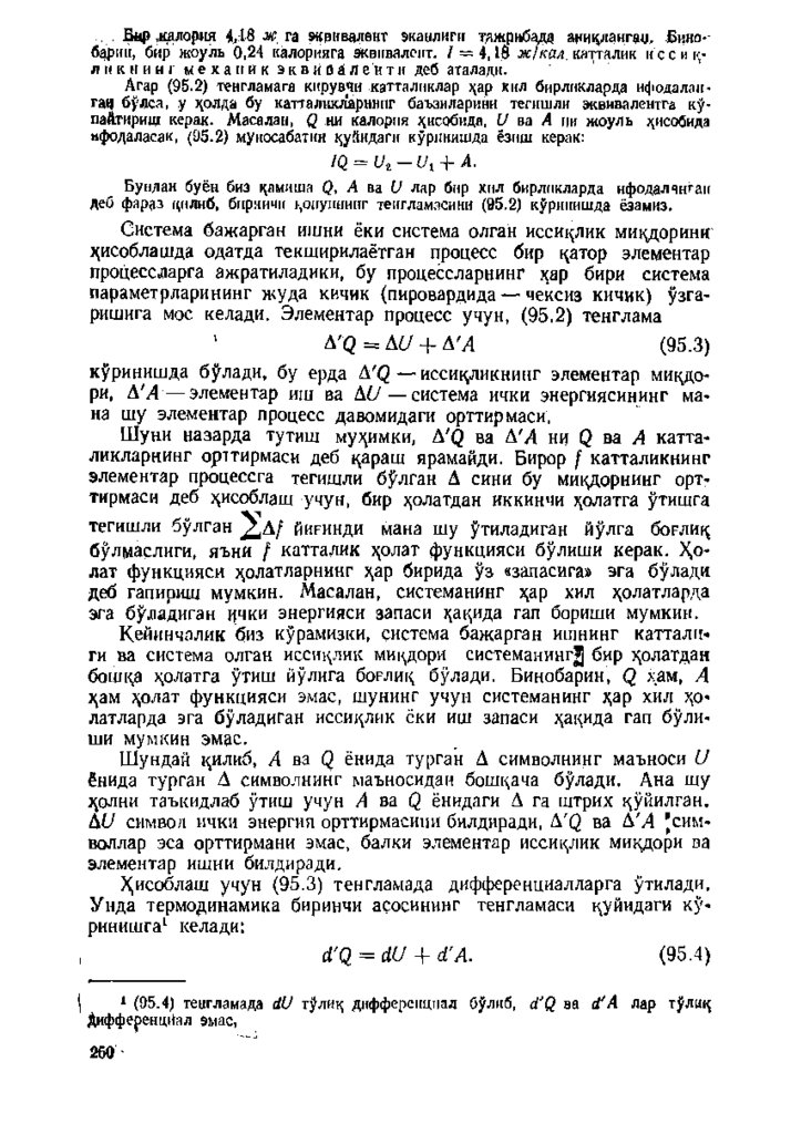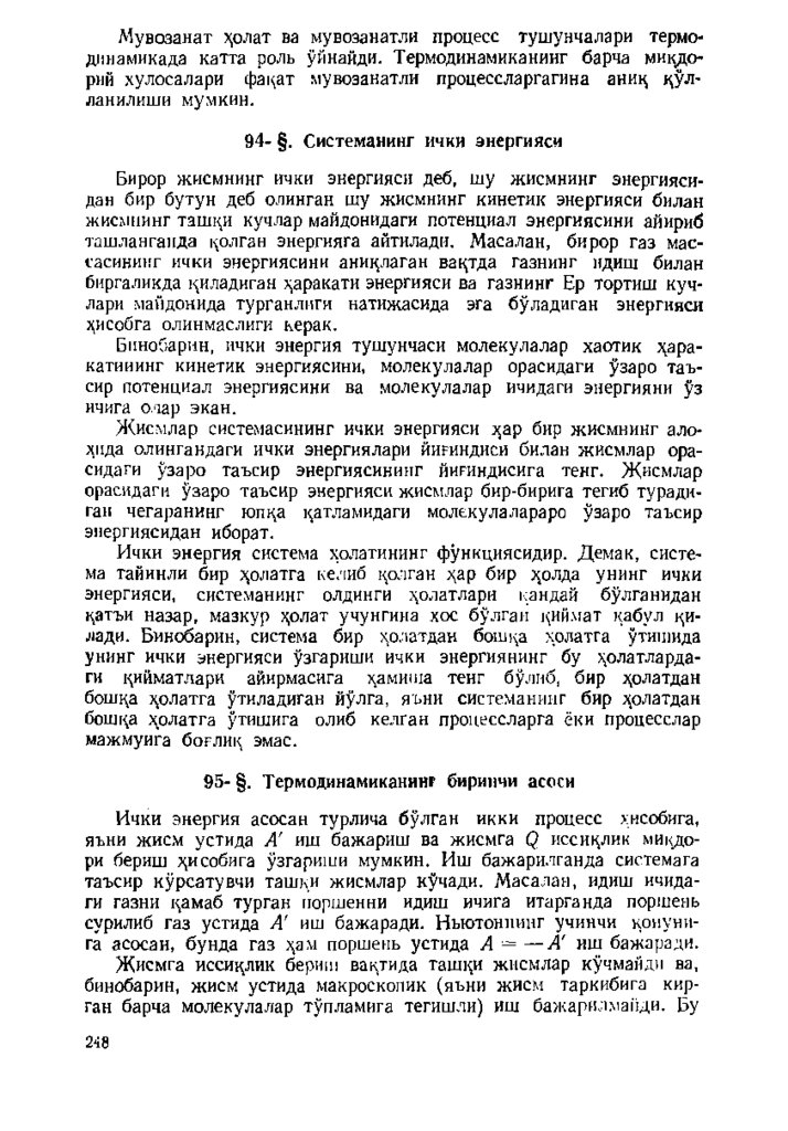 95- §. Термодинамиканинг биринчи а с о с н ............................................................248