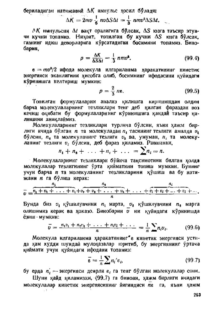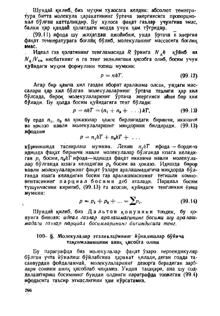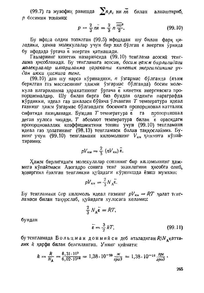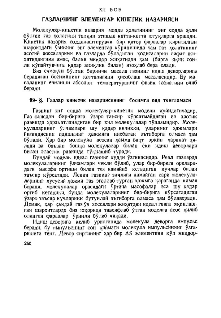 99- § . Г азл ар кннетик назариясининг босимга оид тенгламасн . . . . 260