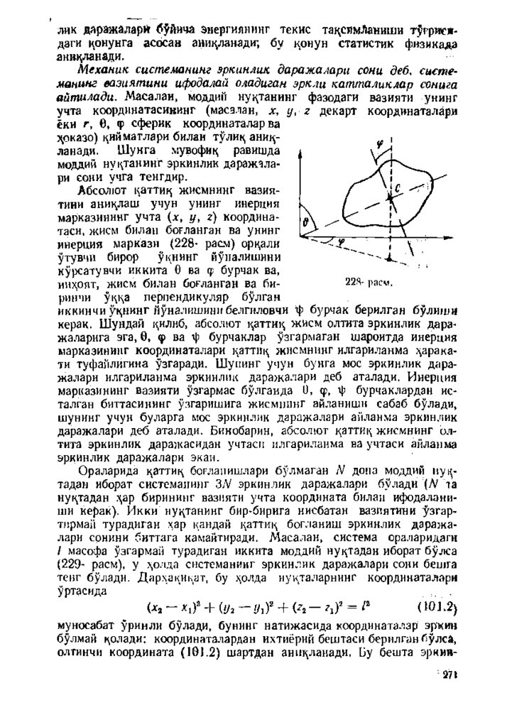 101- §. Энергия 1нн 1г молекула эркинлик дараж алари буйича текис тац