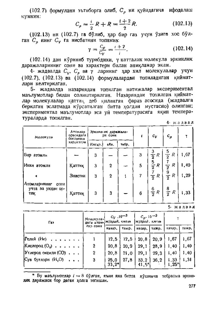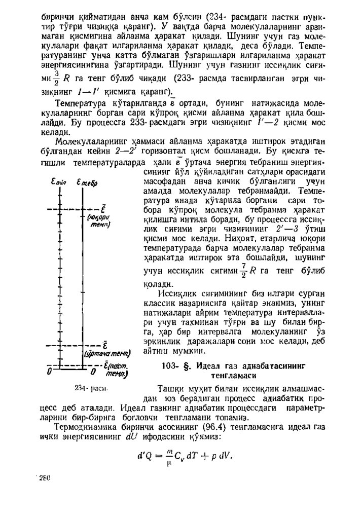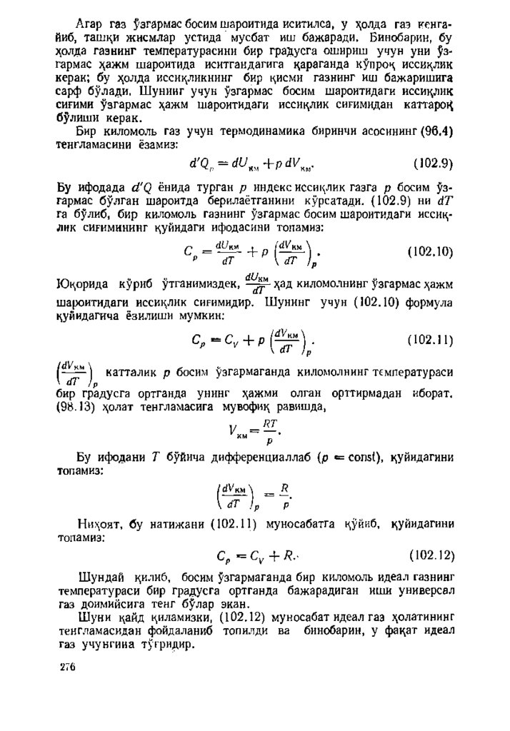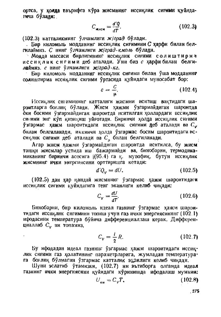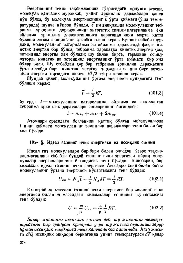 102- §. И леал газнинг ичкн энергияси ва иссицлик с и г и м и ....................... 274