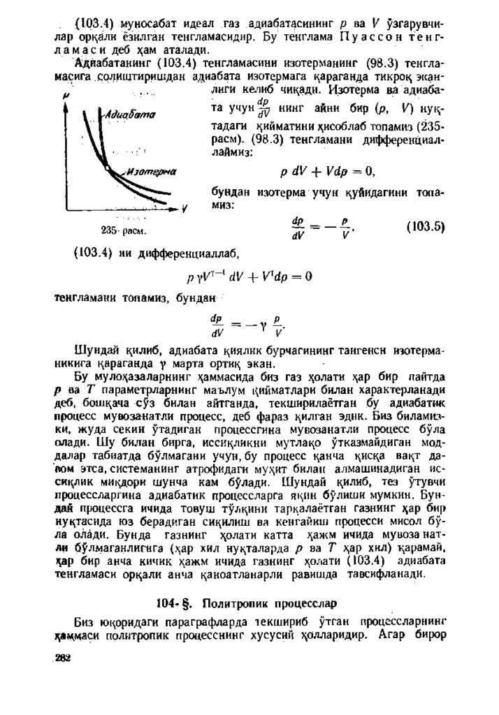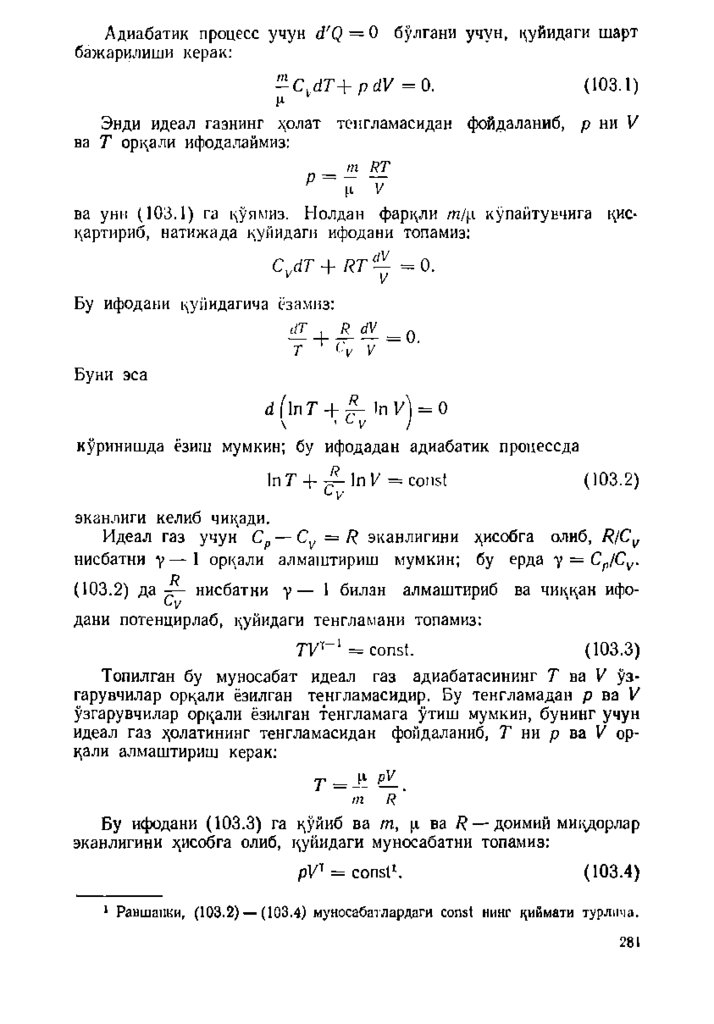 103- §. И деал газ а.диабатасинииг тенгламаси