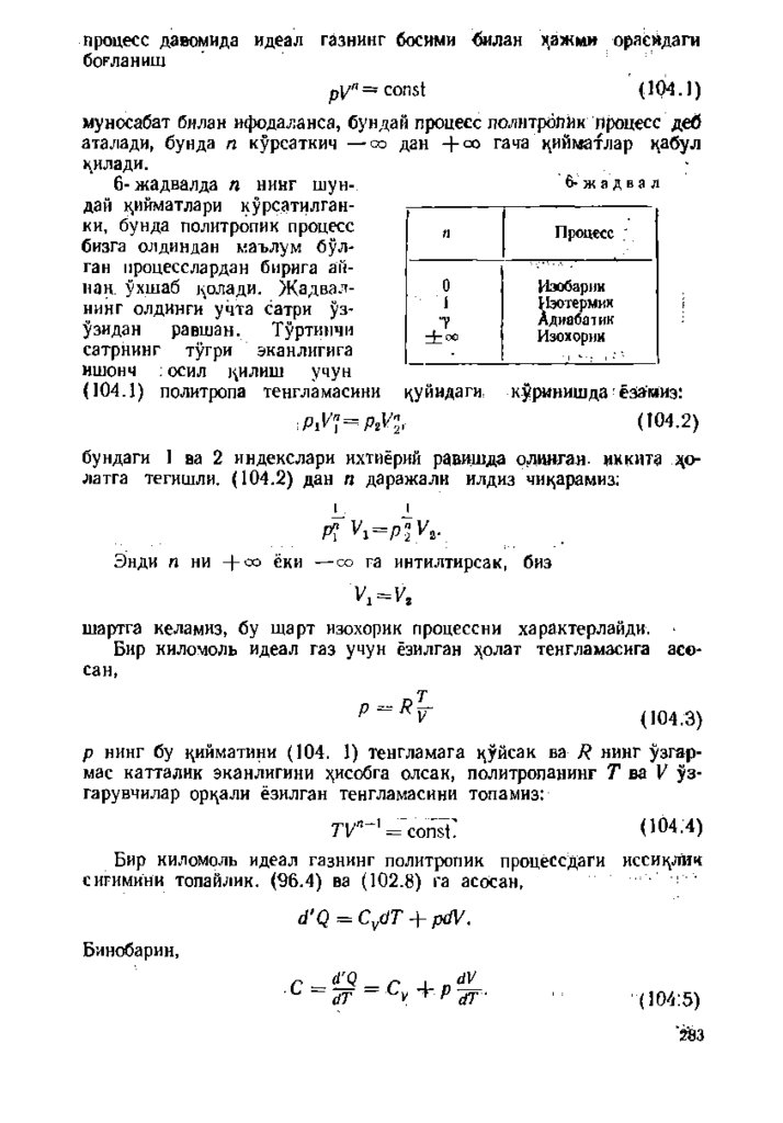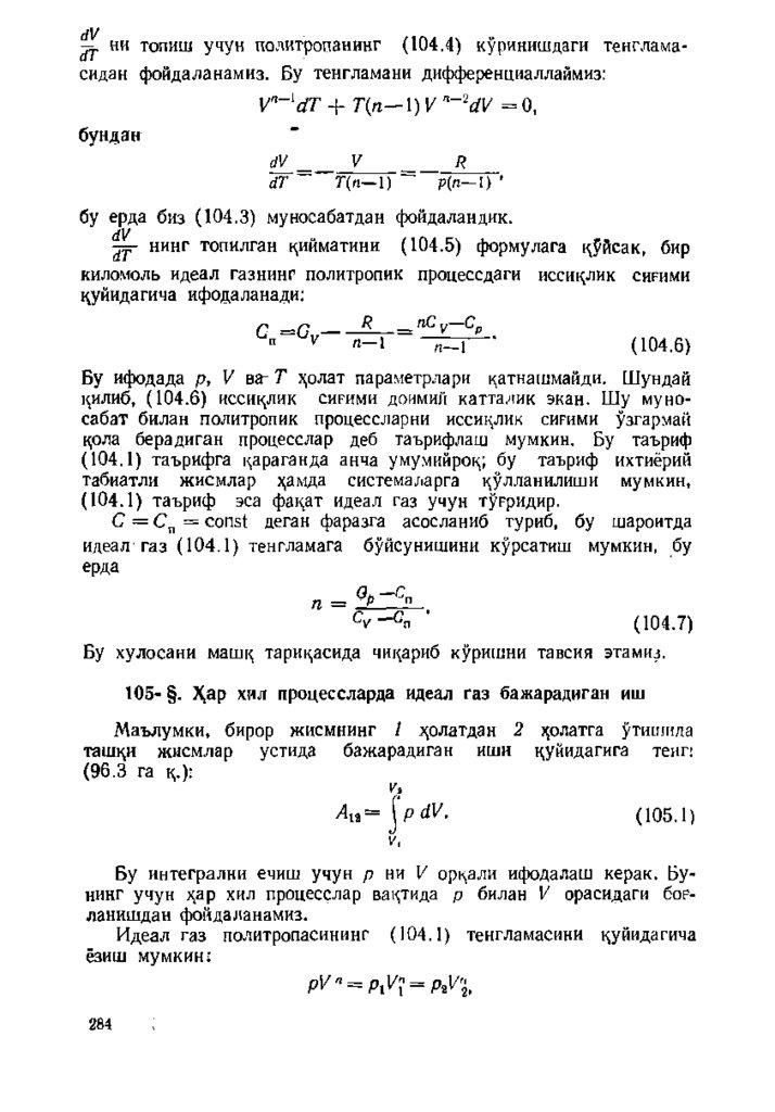 105- §. )^ар хил процессларда идеал газ баж арадиган и ш ............................284
