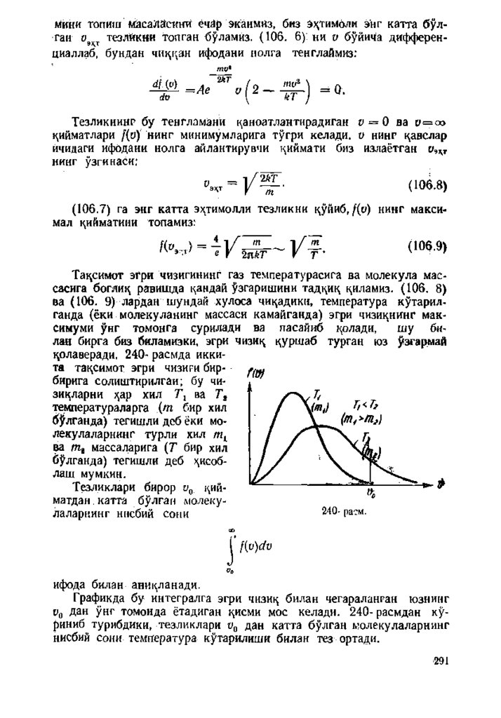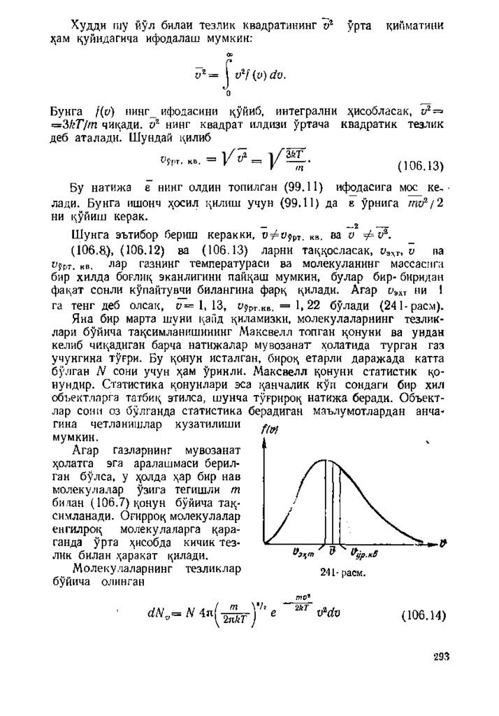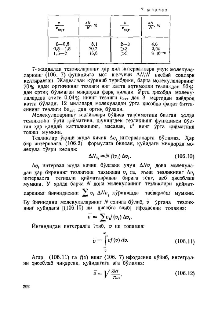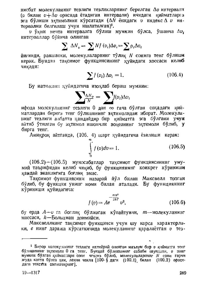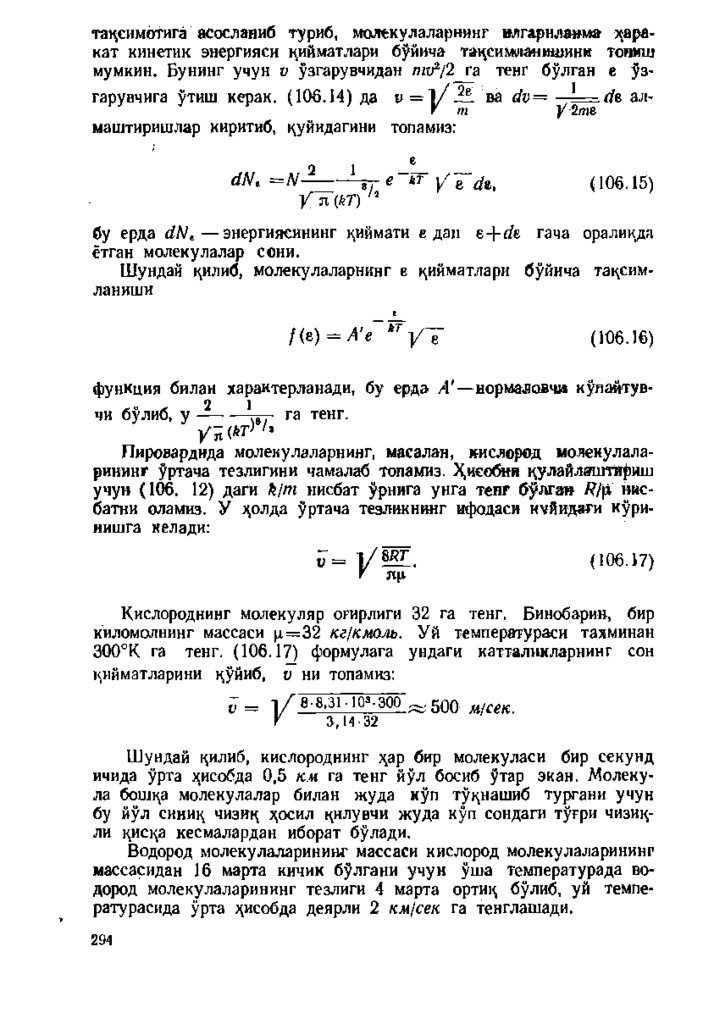 106- §. Газ молекулаларининг тезли клар буйича тацсимланиши