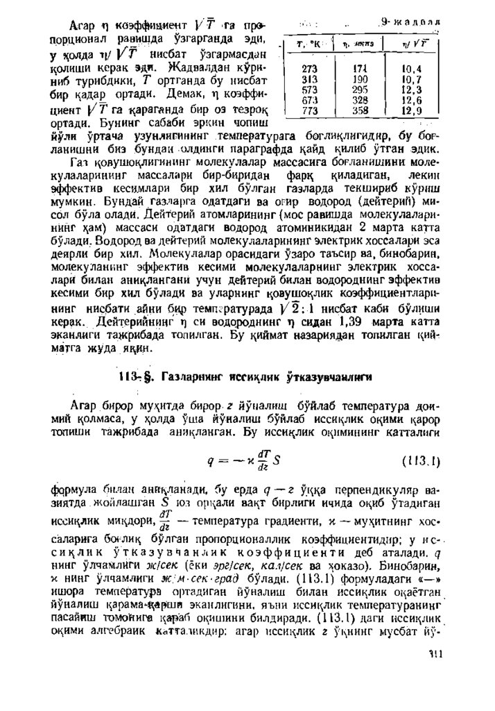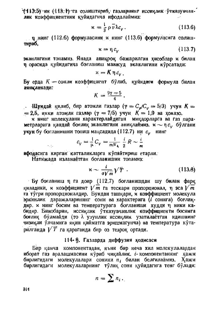 113- §. Газларнинг иссицлик утказувчанЛ 1; г и ....................................................... 311