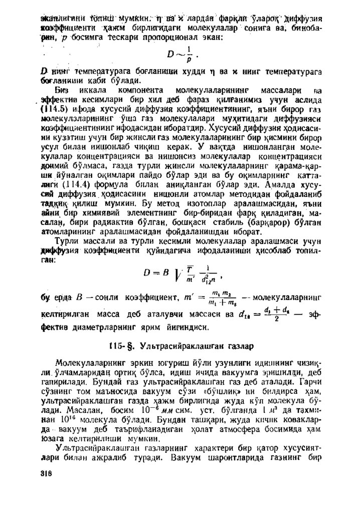 114- §. Газларда диффузия з^одисаси . . . . ....................................................... 314115- §. У льтрасийраклаш ган газлар ......................................................................... 318