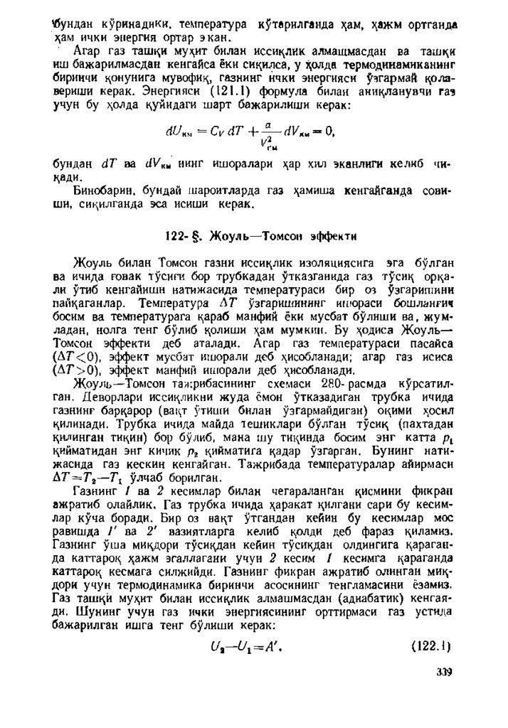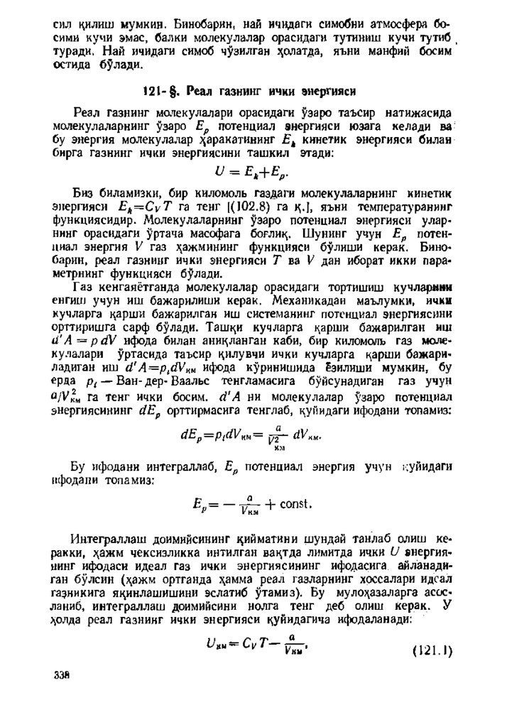 121- §. Реал газнинг ички энергияси ......................................................................... 338