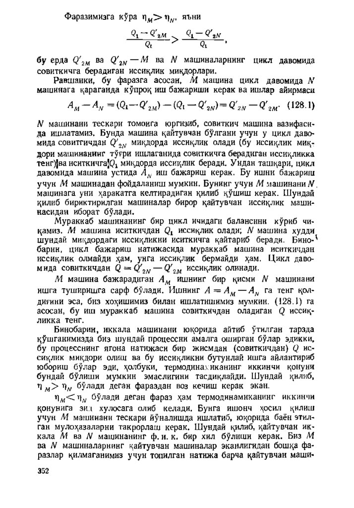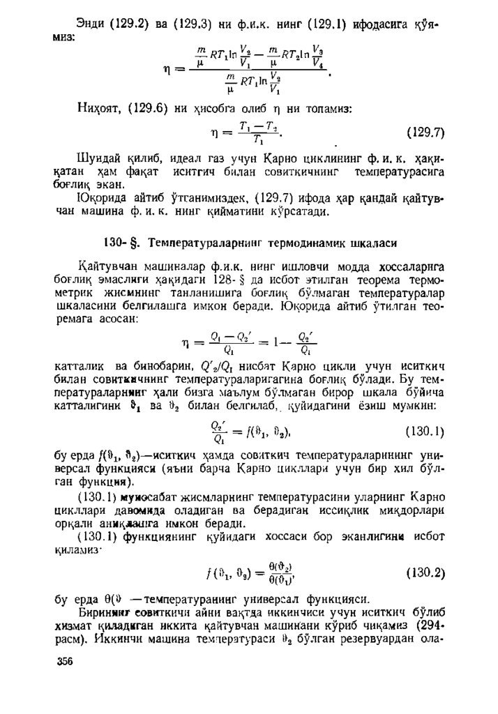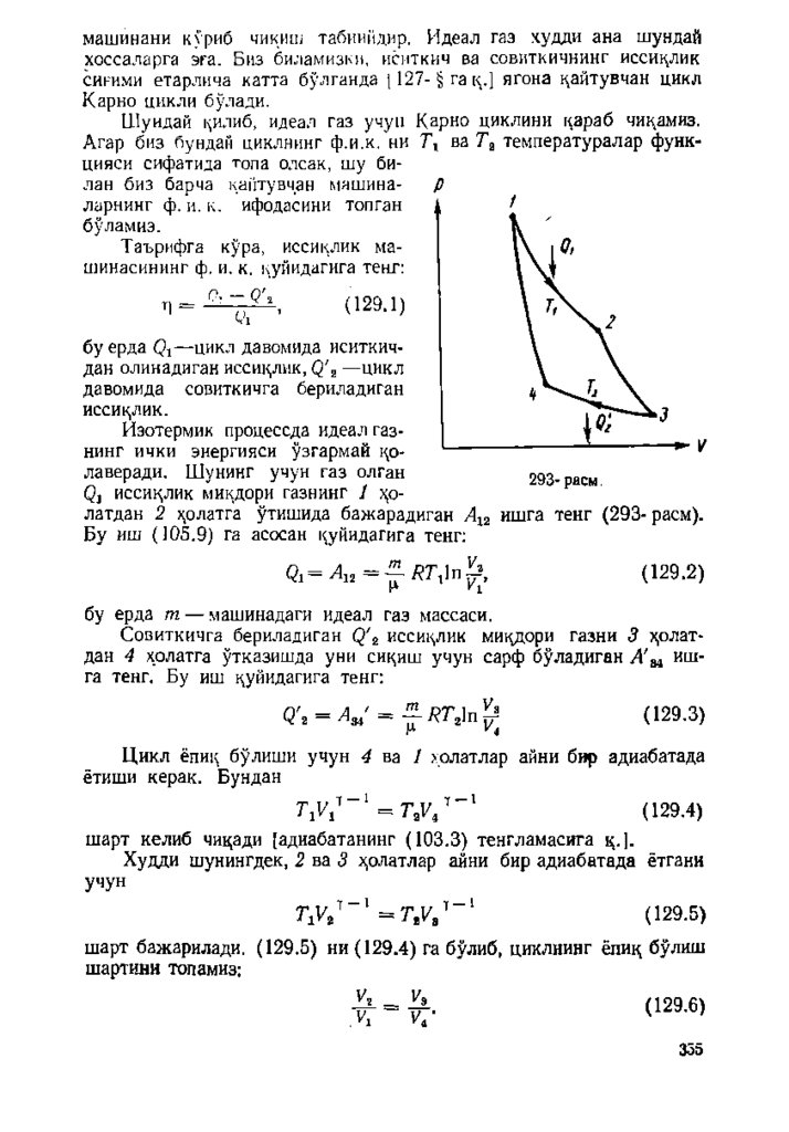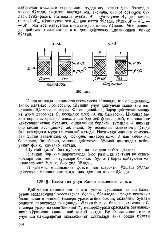 129- §. И деал газ учун Карно циклннннг ф . и. к...............................................354