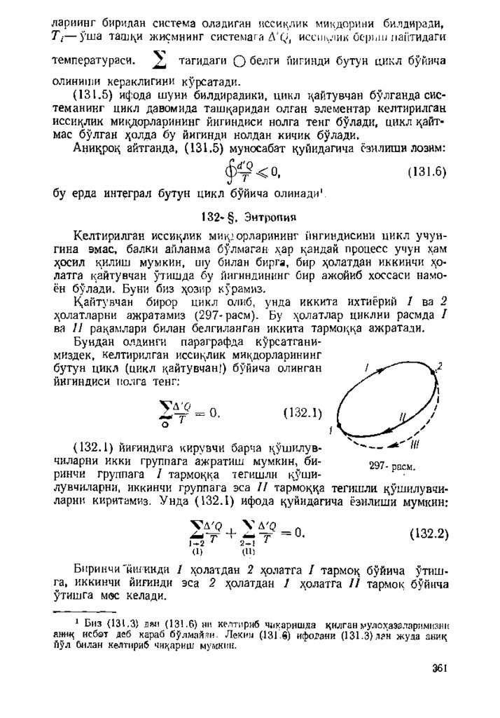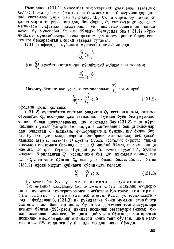 131- §. Келтирилган иссицлик мицдори. Клаузиус т си г с м з л и ги .................. 358