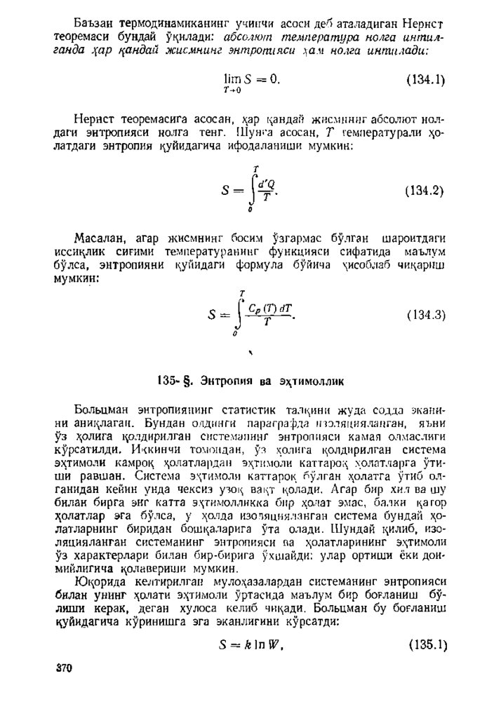 133- §. Энтропиянинг }^оссал ари .................................................................................. 364