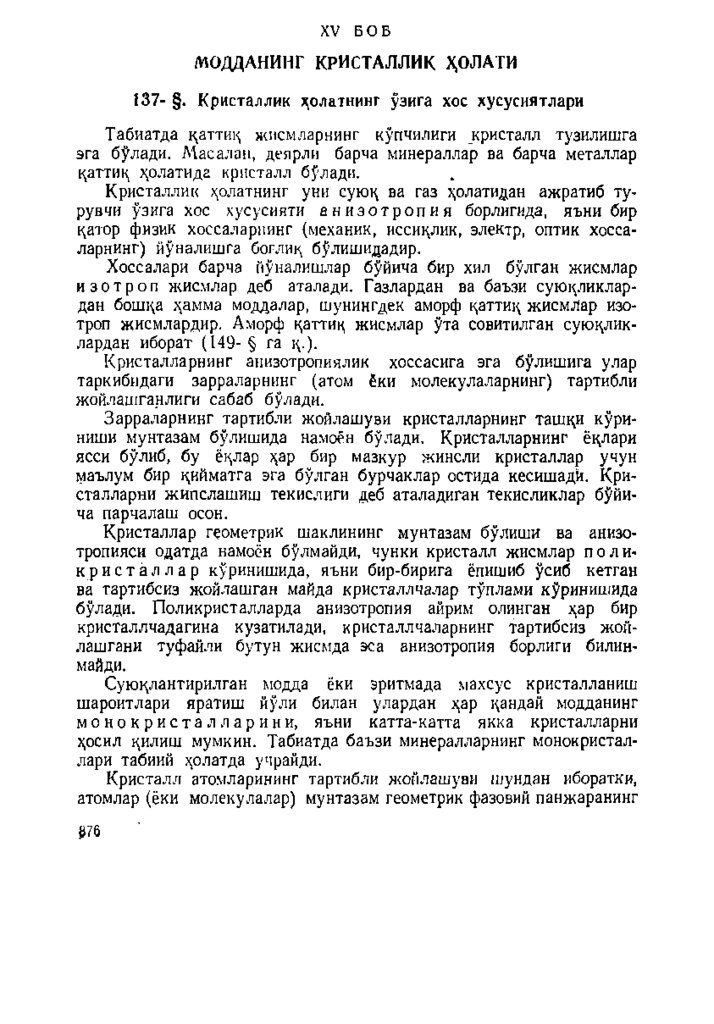 —137- §. Кристаллик ;^олатининг узига хос х у с у с и я т л а р и ................................ 376