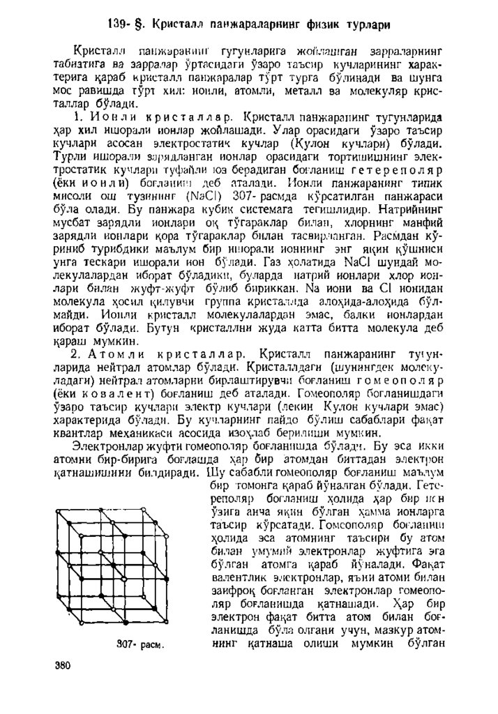139- §. Кристалл панжараларнинг физик т у р л а р и ......................................... .... ...380