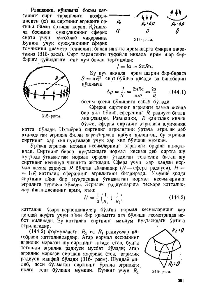 144- §. Суюцликнинг эгриланган сирти остидаги б о с и м ....................... .... . 390
