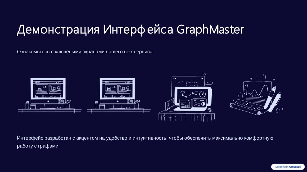 Демонстрация Интерф ейс а GraphMasterОзнакомьтесь с ключевыми экранами нашего веб-сервиса.