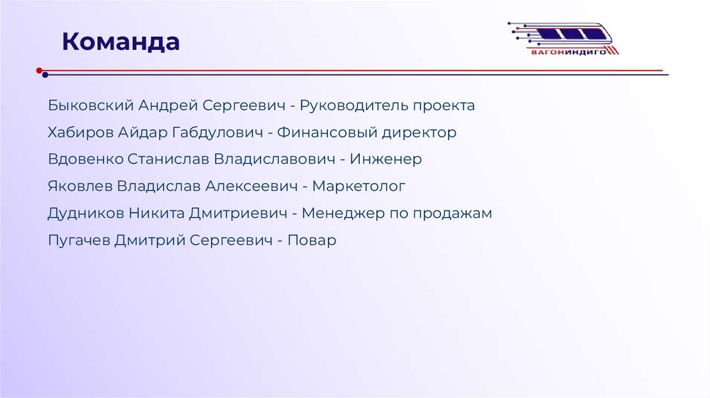КомандаБыковский Андрей Сергеевич - Руководитель проекта