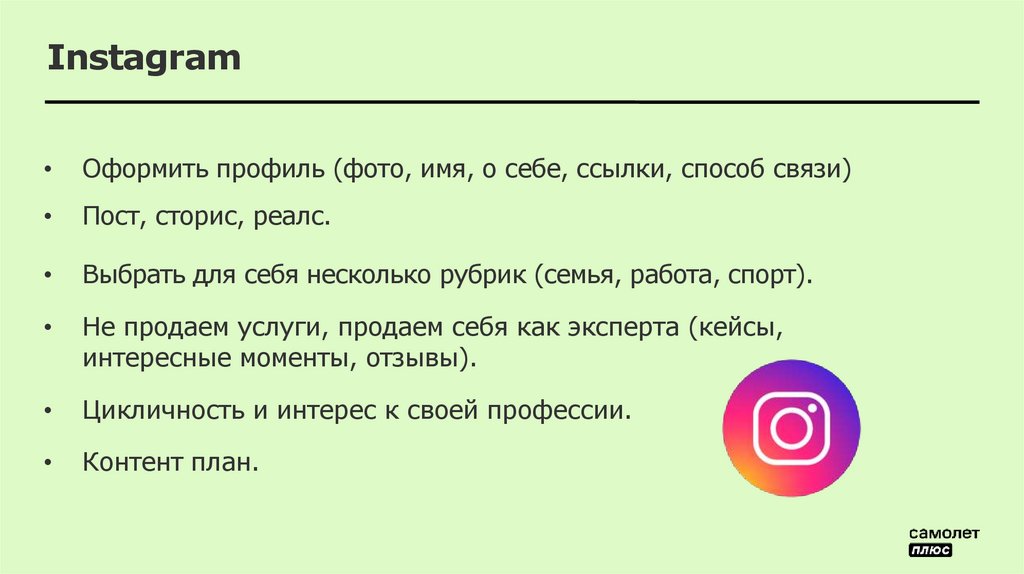 Оформить профиль (фото, имя, о себе, ссылки, способ связи)