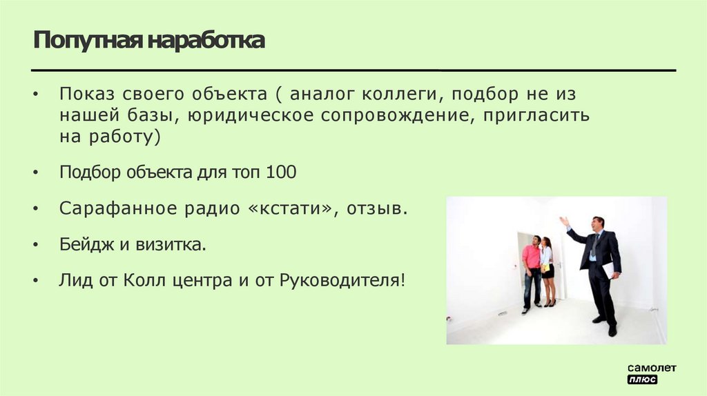 ПопутнаянаработкаПоказ своего объекта ( аналог коллеги, подбор не из
