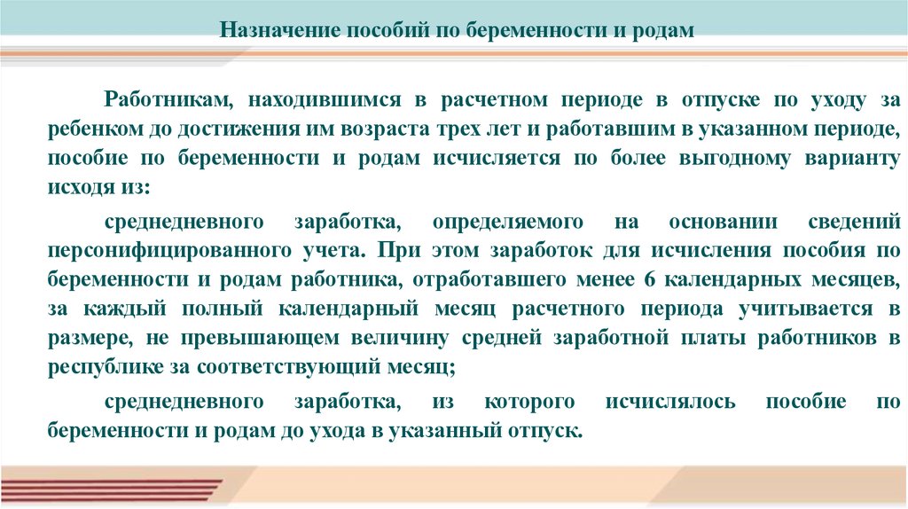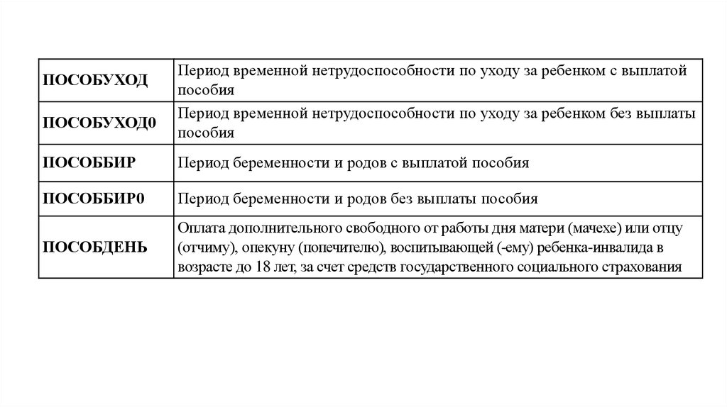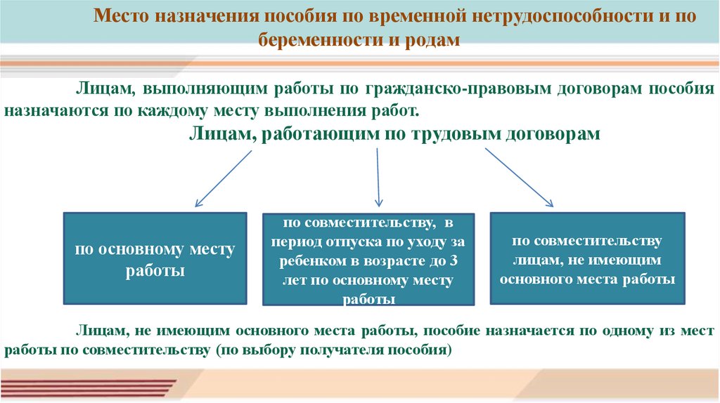 Место назначения пособия по временной нетрудоспособности и побеременности и родам