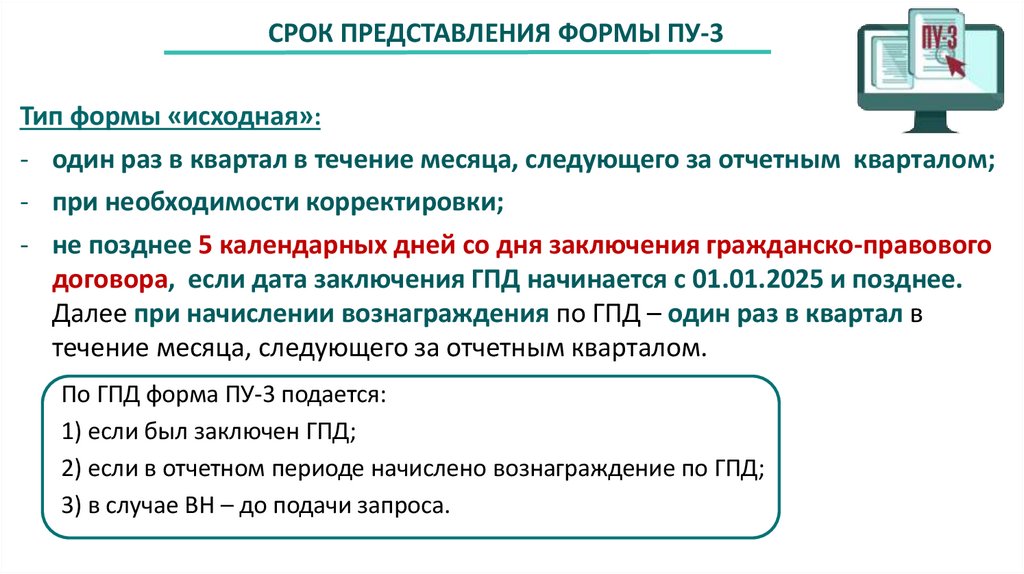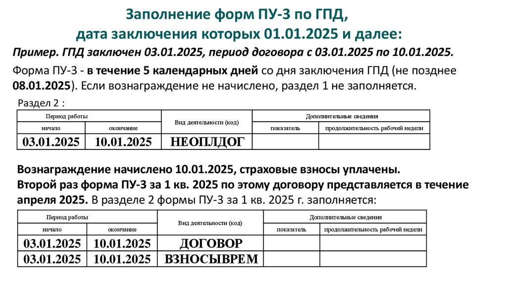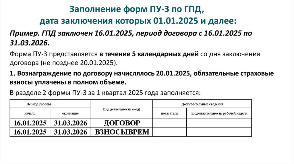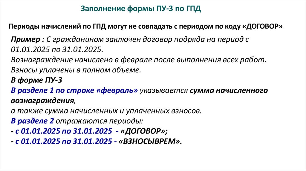 Заполнение форм ПУ-3 по ГПД,дата заключения которых 01.01.2025 и далее:
