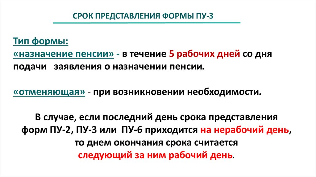 Форма ПУ-3 представляется в течение 5 календарных дней со дня заключения