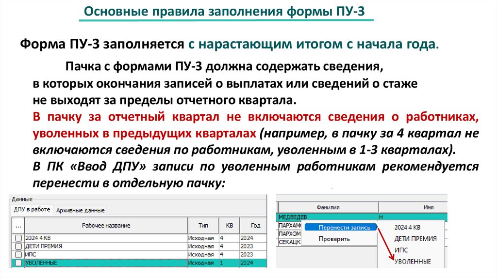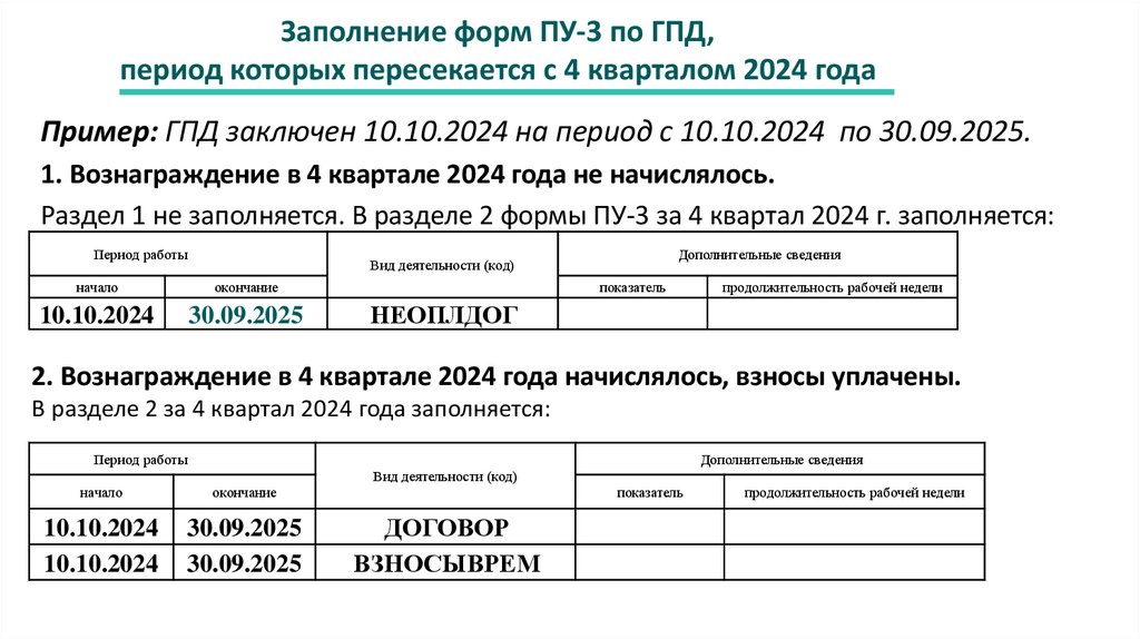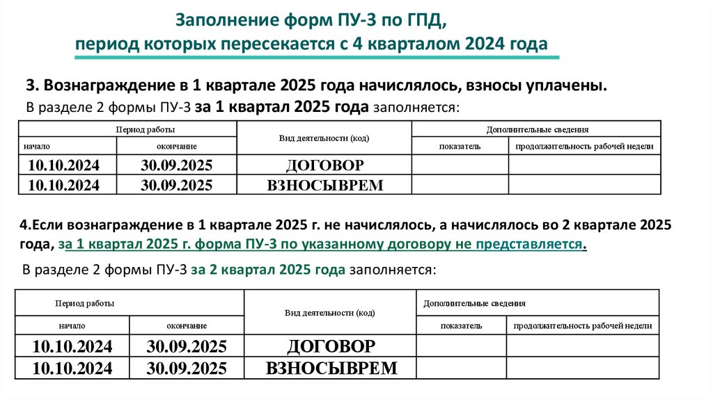 Заполнение форм ПУ-3 по ГПД,период которых пересекается с 4 кварталом 2024 года