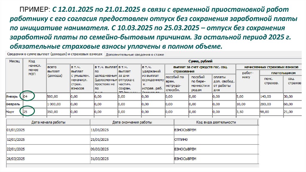 Раздел 2: с 08.01.2025 по 31.03.2025 – «НЕОПЛДОГ» (если до 13.01.2025 не было начислений).