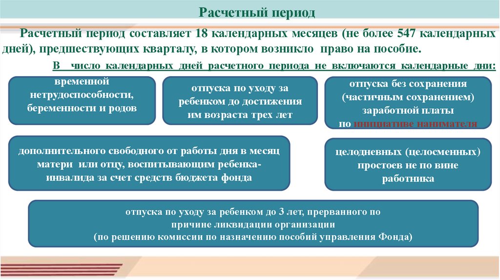 Расчетный периодРасчетный период составляет 18 календарных месяцев (не более 547 календарных