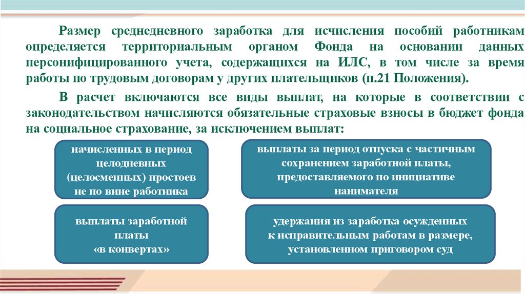 Размер среднедневного заработка для исчисления пособий работникамопределяется территориальным органом Фонда на основании данных