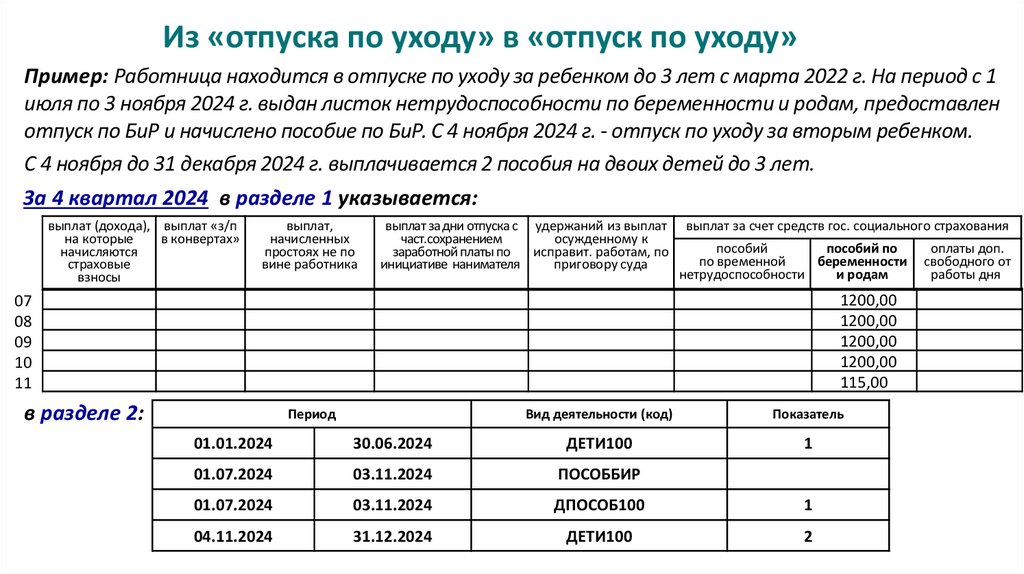 В разделе 2 за 4 квартал 2024 года заполняется: