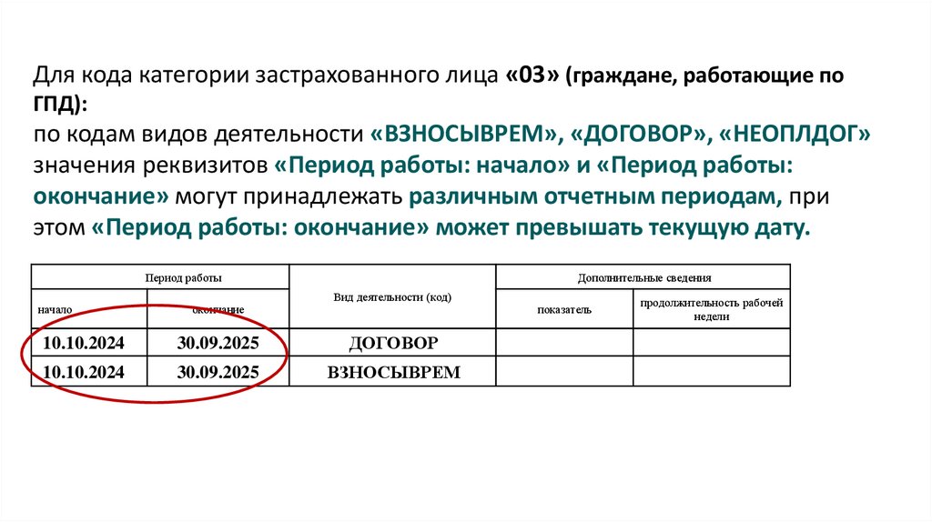 Пример: ГПД заключен 10.10.2024 на период с 10.10.2024 по 30.09.2025.