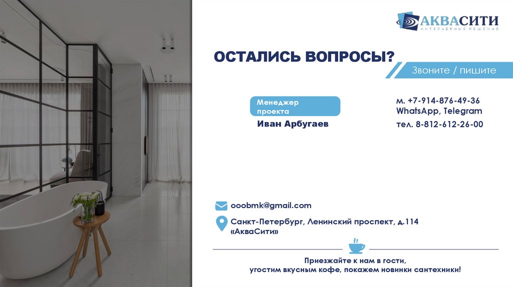 угостим вкусным кофе, покажем новинки сантехники!
