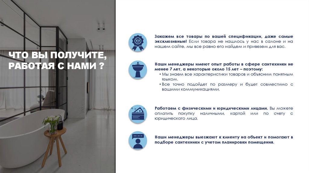 Наши менеджеры имеют опыт работы в сфере сантехники не