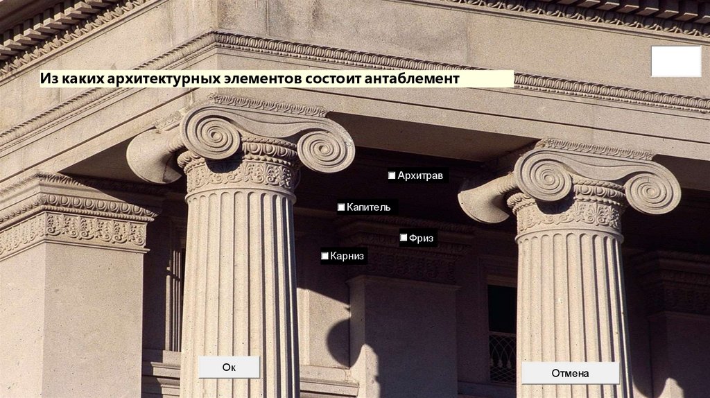 Из каких архитектурных элементов состоит антаблементАрхитрав