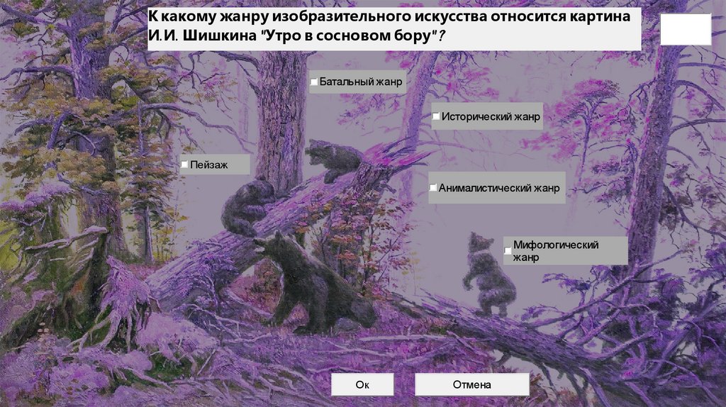 К какому жанру изобразительного искусства относится картинаИ.И. Шишкина "Утро в сосновом бору"?