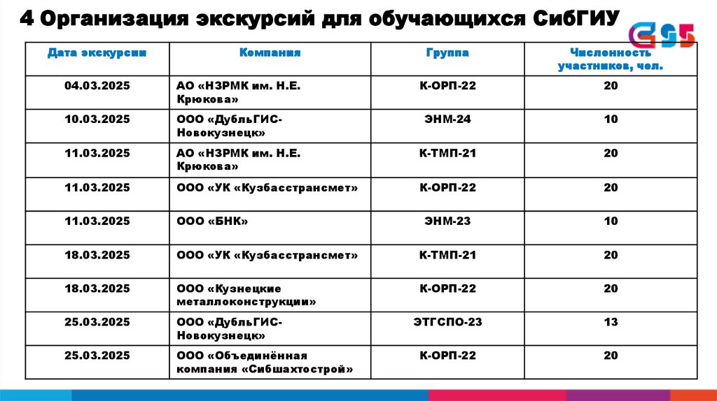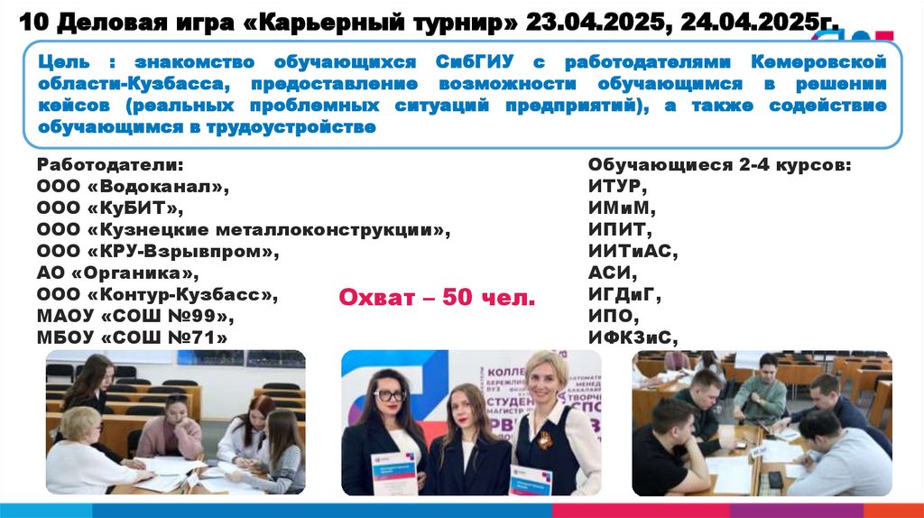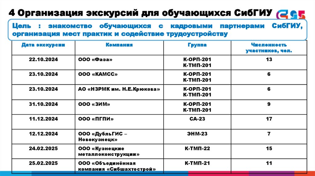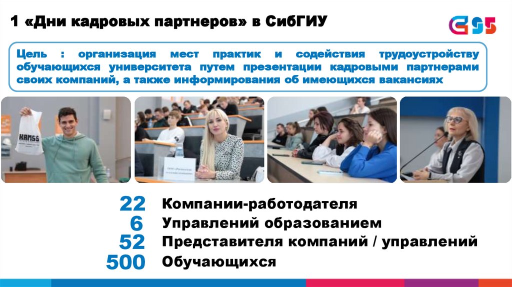 1 «Дни кадровых партнеров» в СибГИУЦель : организация мест практик и содействия трудоустройству