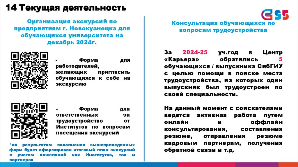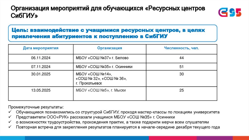 Отчет о мероприятиях за сентябрь 2024 г. – май 2025 г. Сибирский государственный индустриальный университет