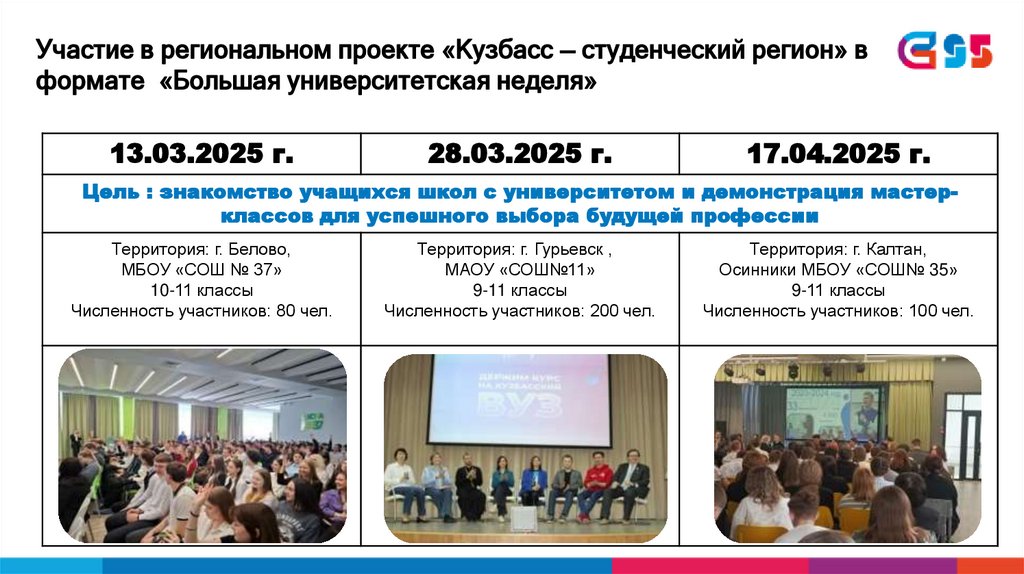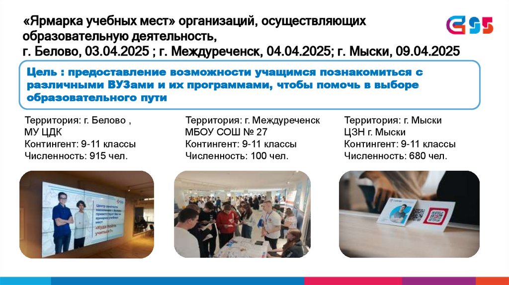 г. Белово, 03.04.2025 ; г. Междуреченск, 04.04.2025; г. Мыски, 09.04.2025