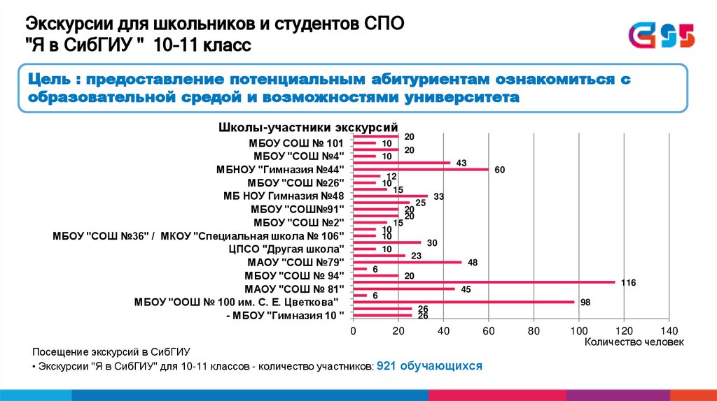 • Экскурсии "Я в Университетском колледже СибГИУ" для 8-9 классов - количество участников: 539 обучающихся