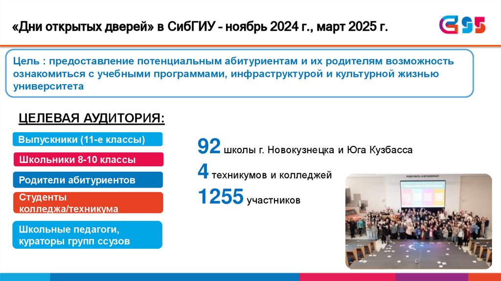 «Дни открытых дверей» в СибГИУ – ноябрь 2024 г., март 2025 г.Цель : предоставление потенциальным абитуриентам и их родителям возможность