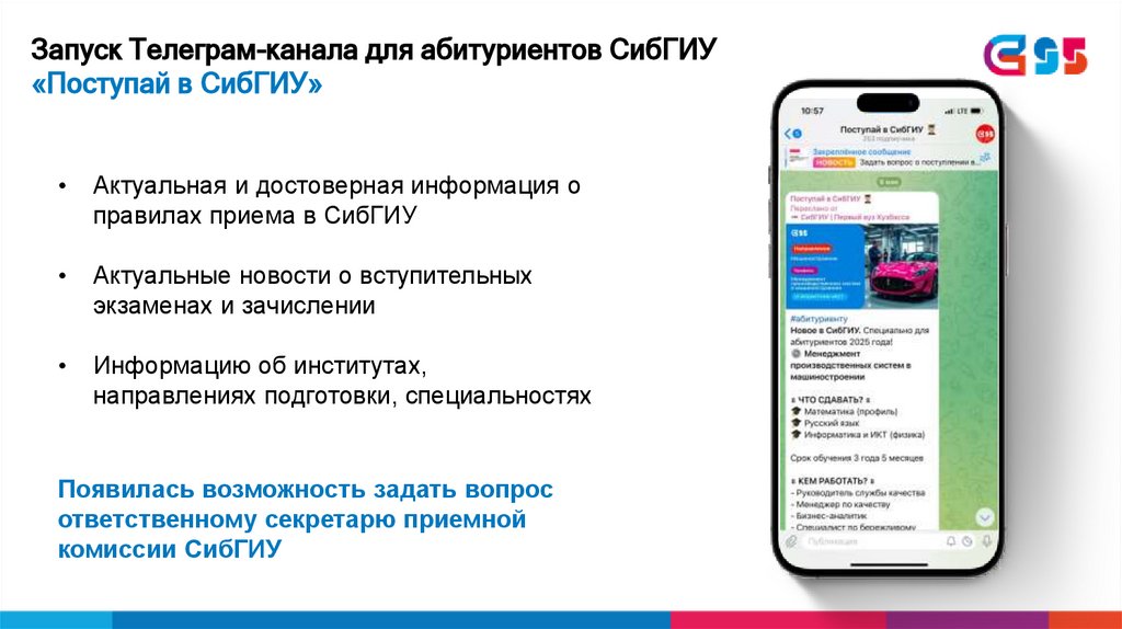 Запуск Телеграм-канала для абитуриентов СибГИУ«Поступай в СибГИУ»