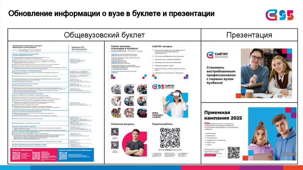 Обновление информации о вузе в буклете и презентацииОбщевузовский буклет