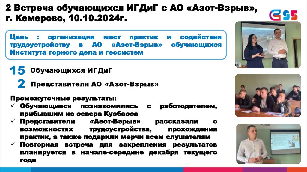 2 Встреча обучающихся ИГДиГ с АО «Азот-Взрыв»,г. Кемерово, 10.10.2024г.