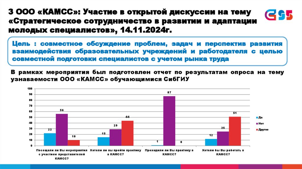 3 ООО «КАМСС»: Участие в открытой дискуссии на тему«Стратегическое сотрудничество в развитии и адаптации