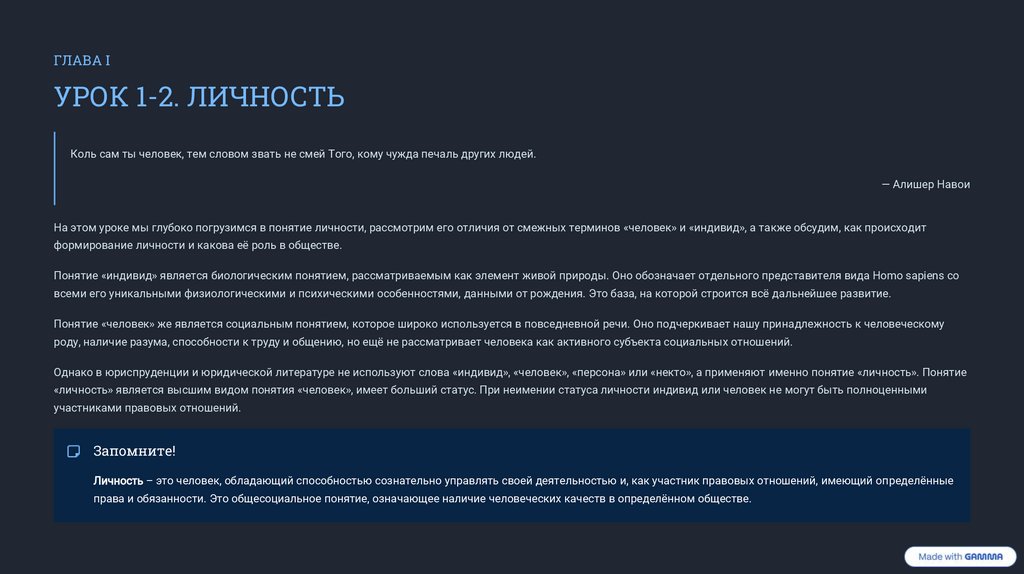 ГЛАВА IУРОК 1-2. ЛИЧНОСТЬ